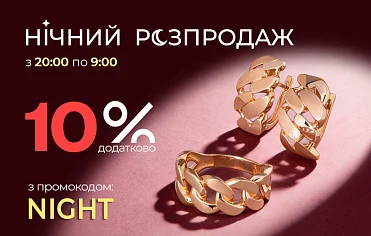 AURUM відкриває нічну розпродажу для тих, хто обирає вигоду без зайвого шуму. Лише з 20.02 20:00 до 21.02 09:00 діє додаткова знижка –10% за промокодом NIGHT на ювелірні прикраси з актуального асортименту.