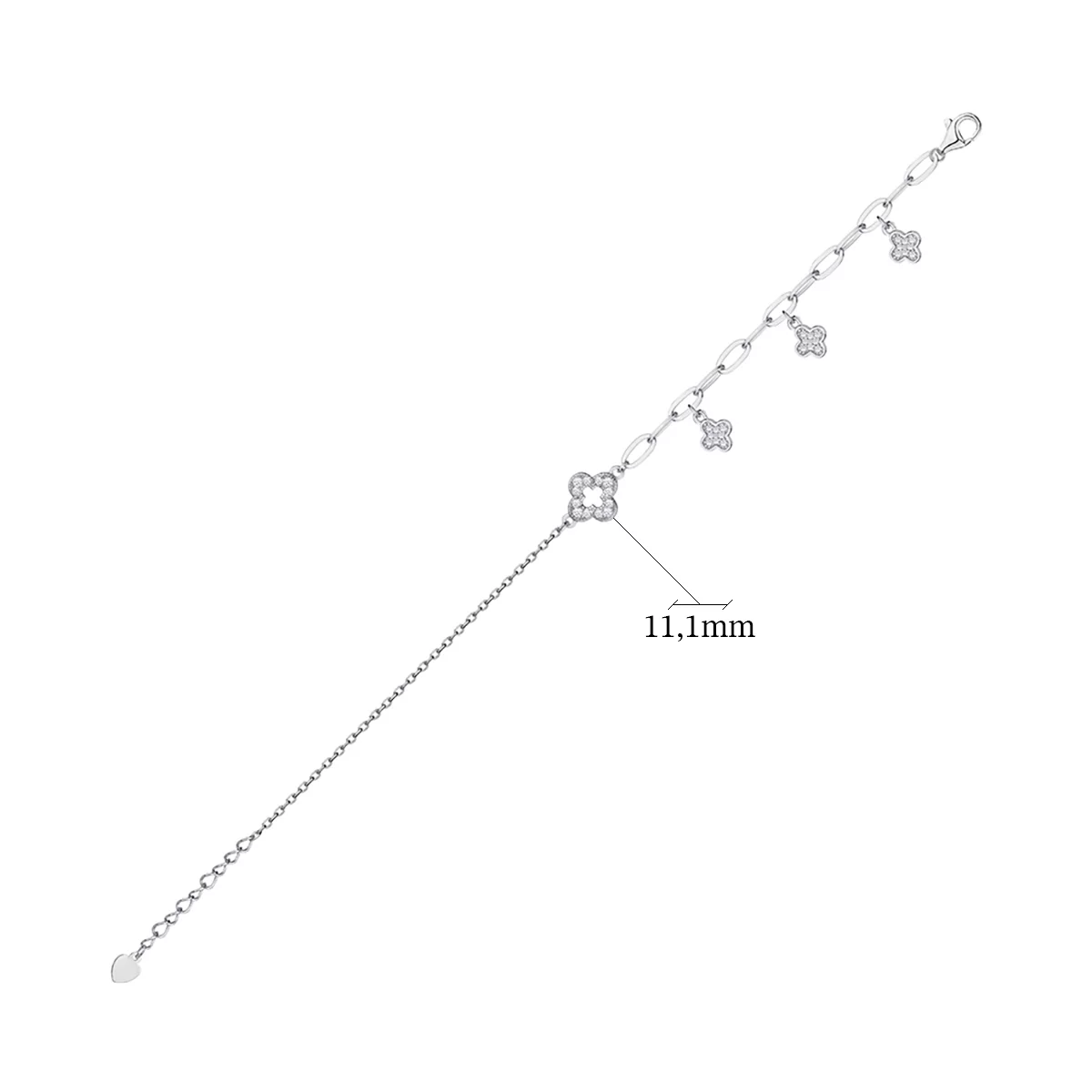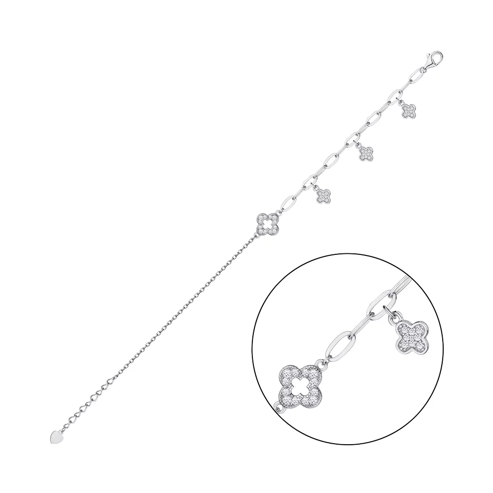 Срібний браслет з підвісками "Конюшина" з емаллю та фіанітами плетіння якір - 1693629