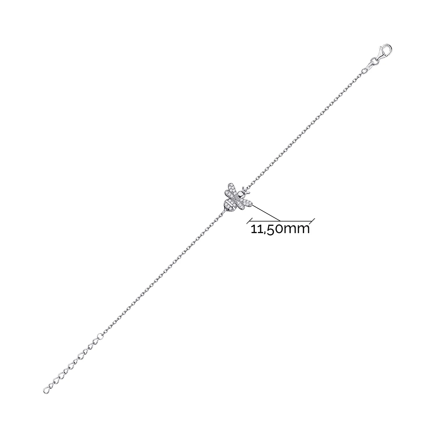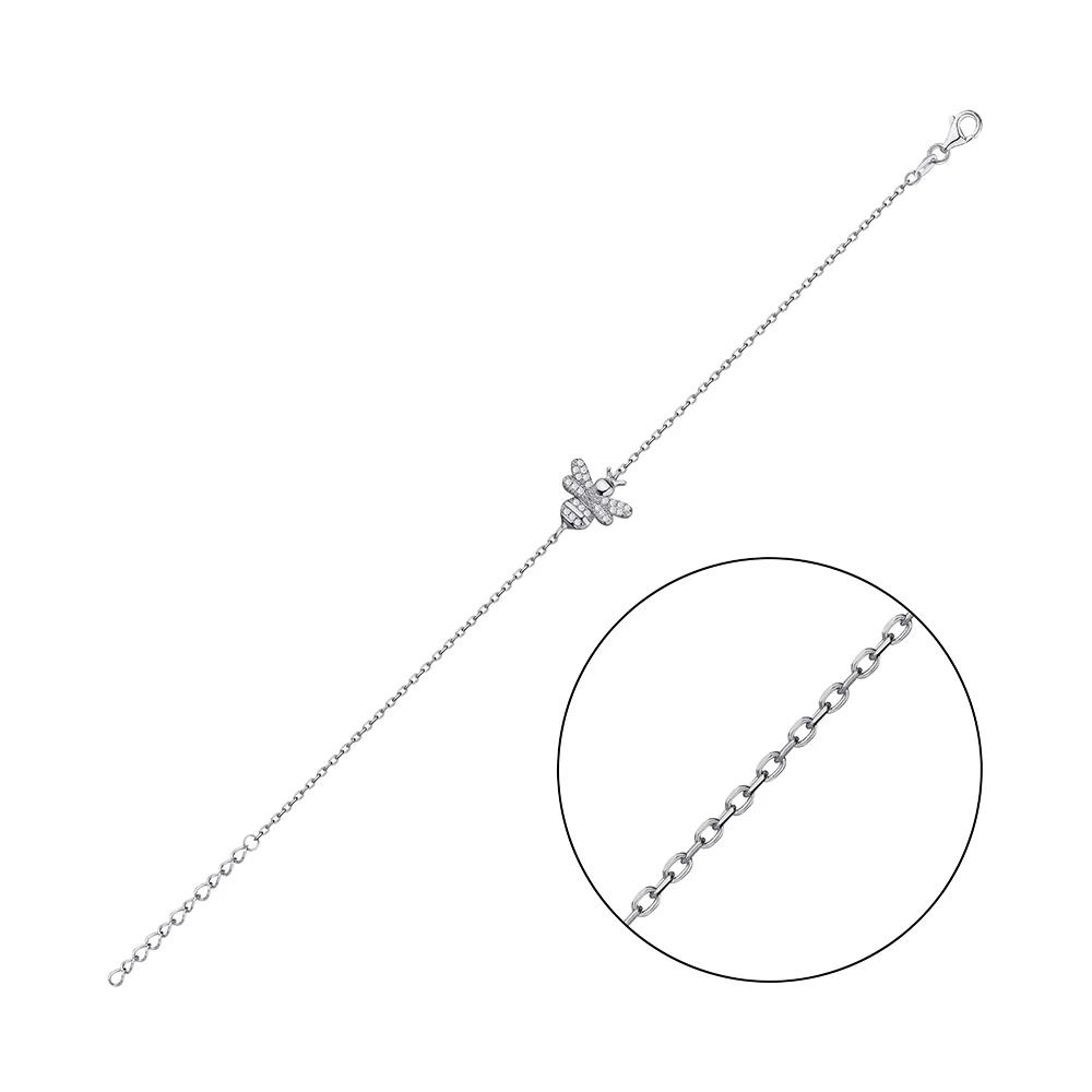 Срібний браслет "Бджола" з фіанітами якірне плетіння - 1343338