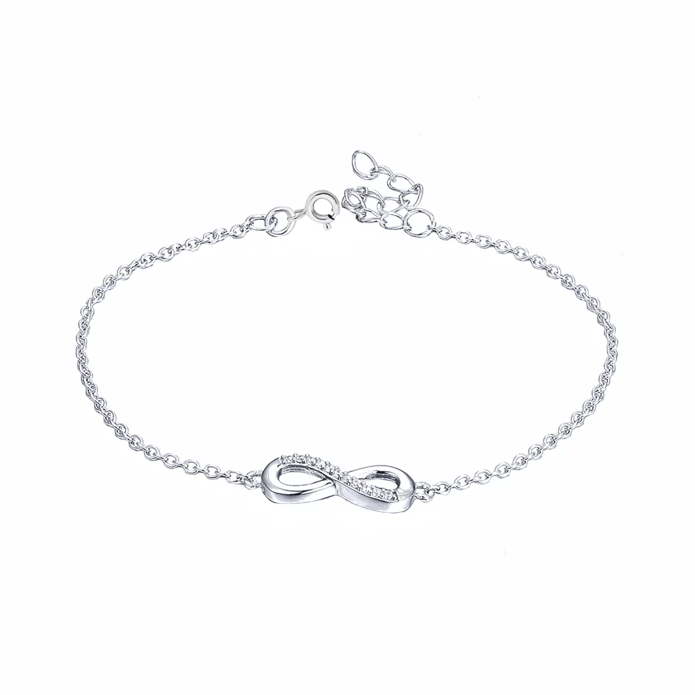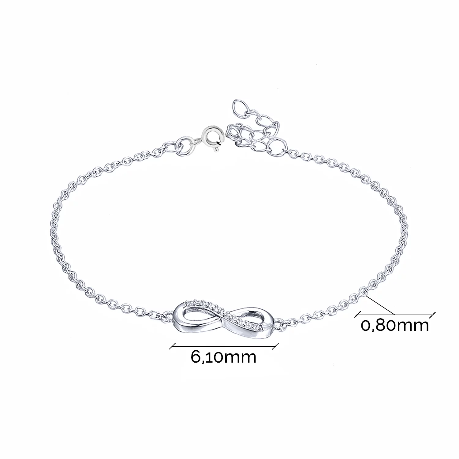 Браслет "Нескінченність" зі срібла з фіанітами плетіння якір - 1823364