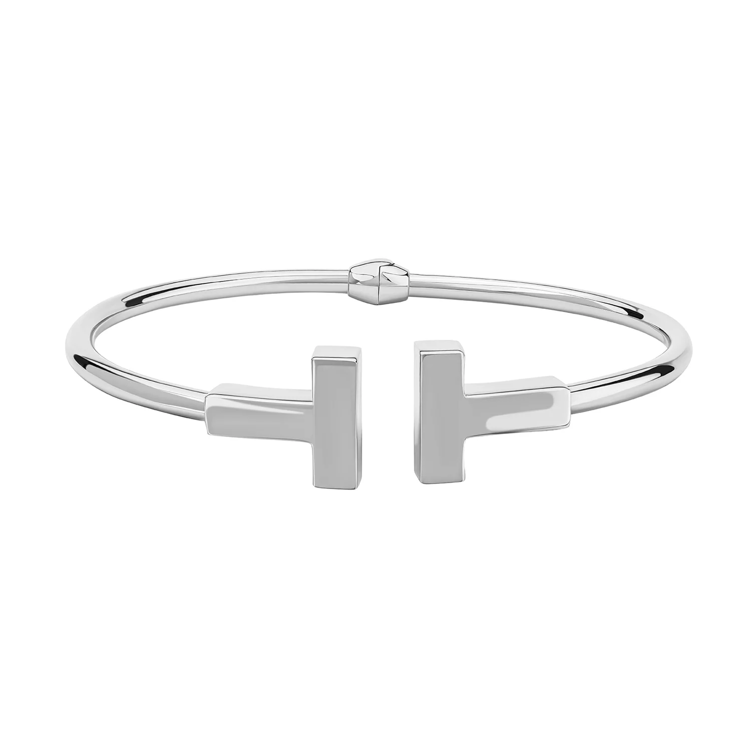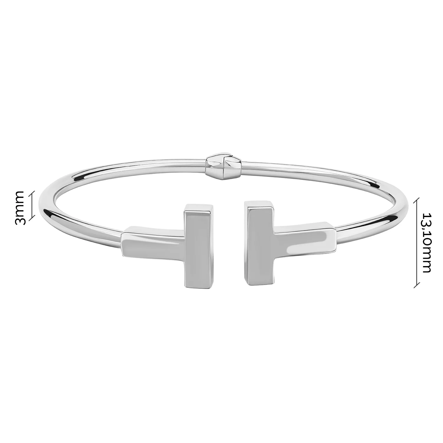Стильний жорсткий браслет з комбінованого золота з алмазною гранню - 1879068