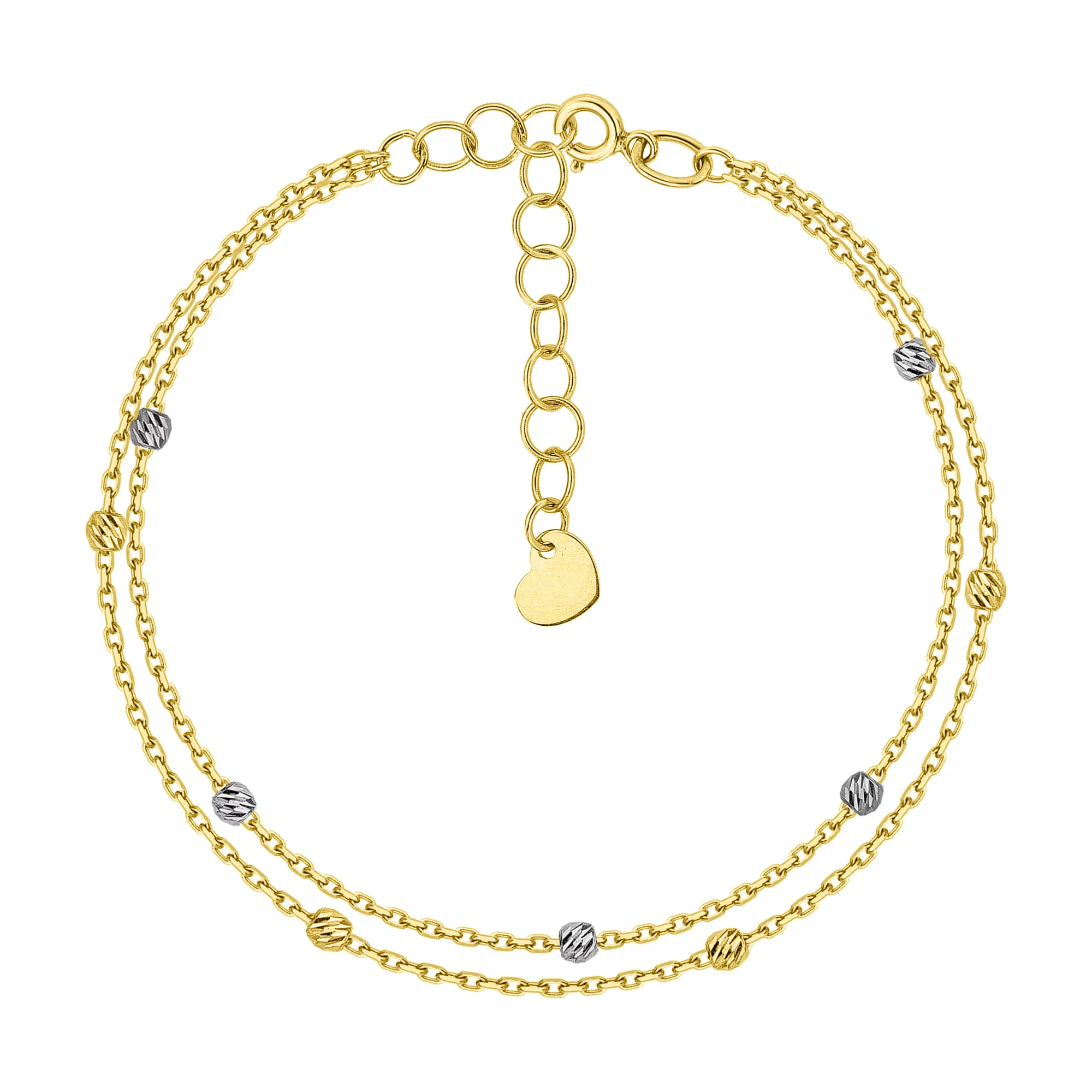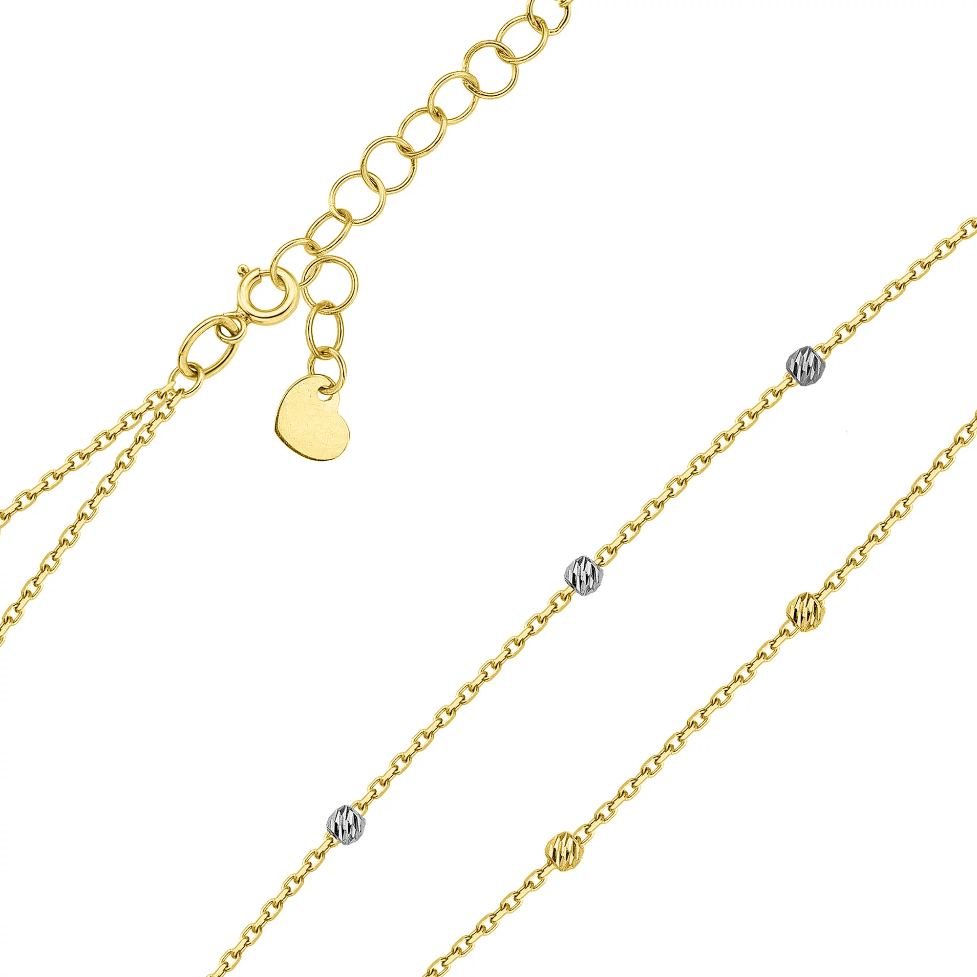 Браслет подвійний з комбінованого золота з кульками якірного плетіння - 1825514