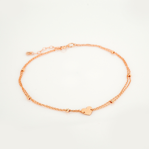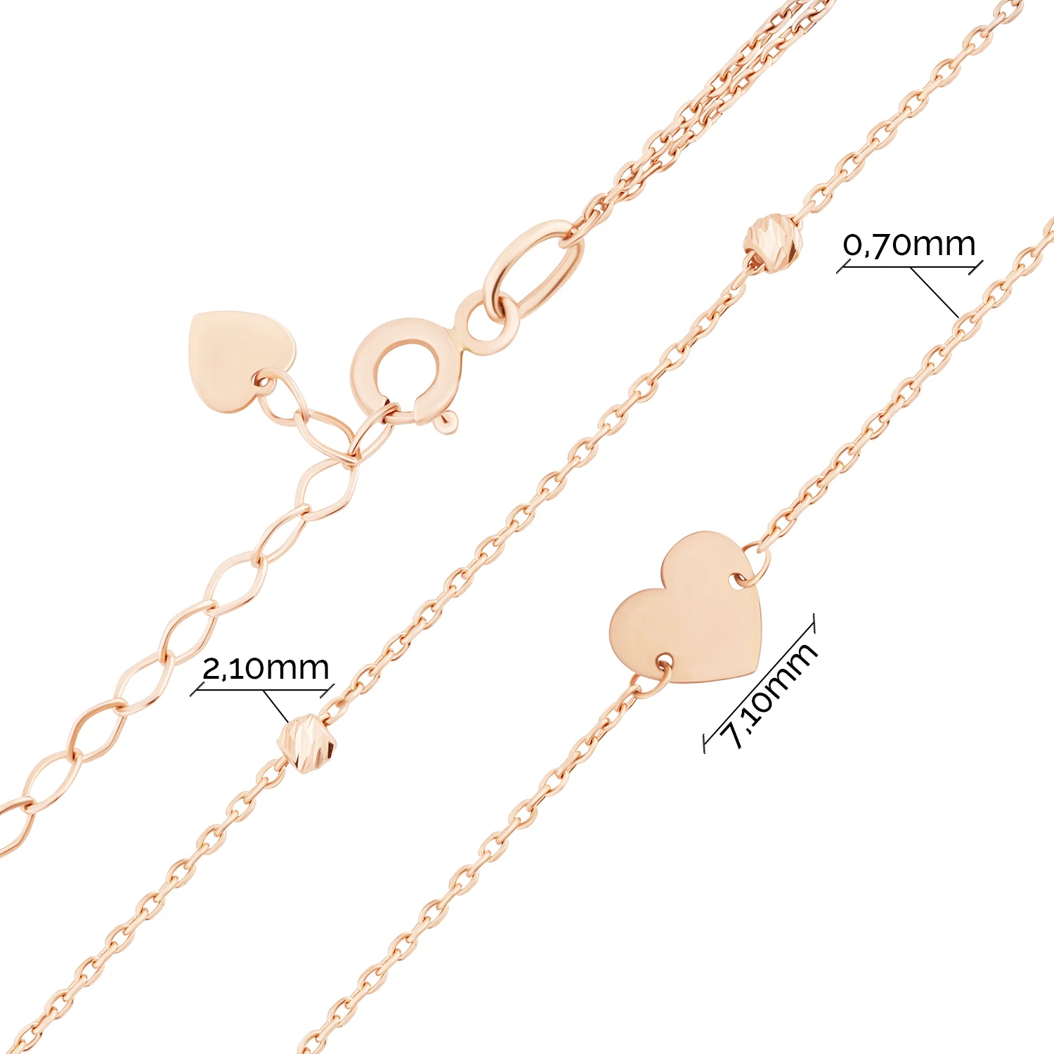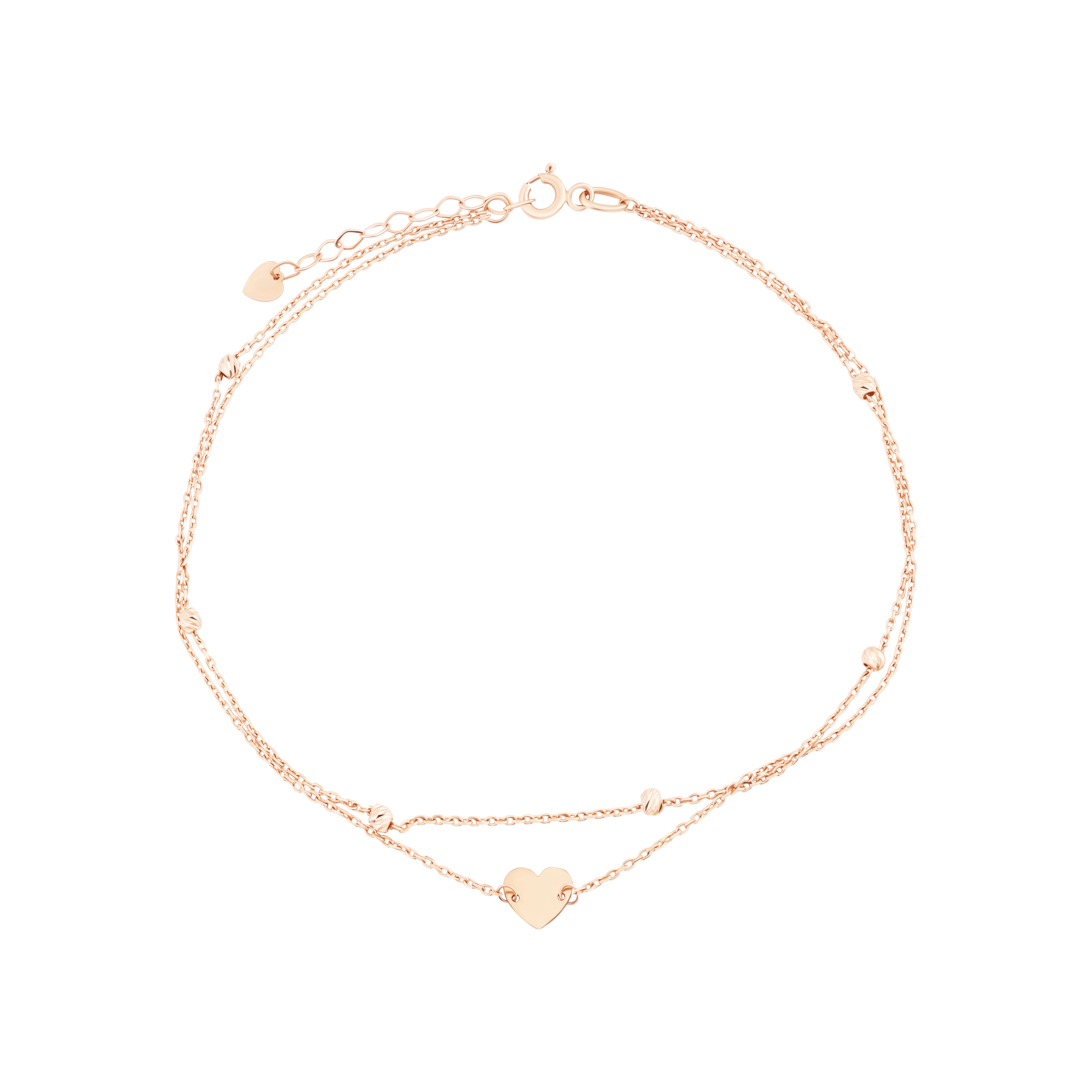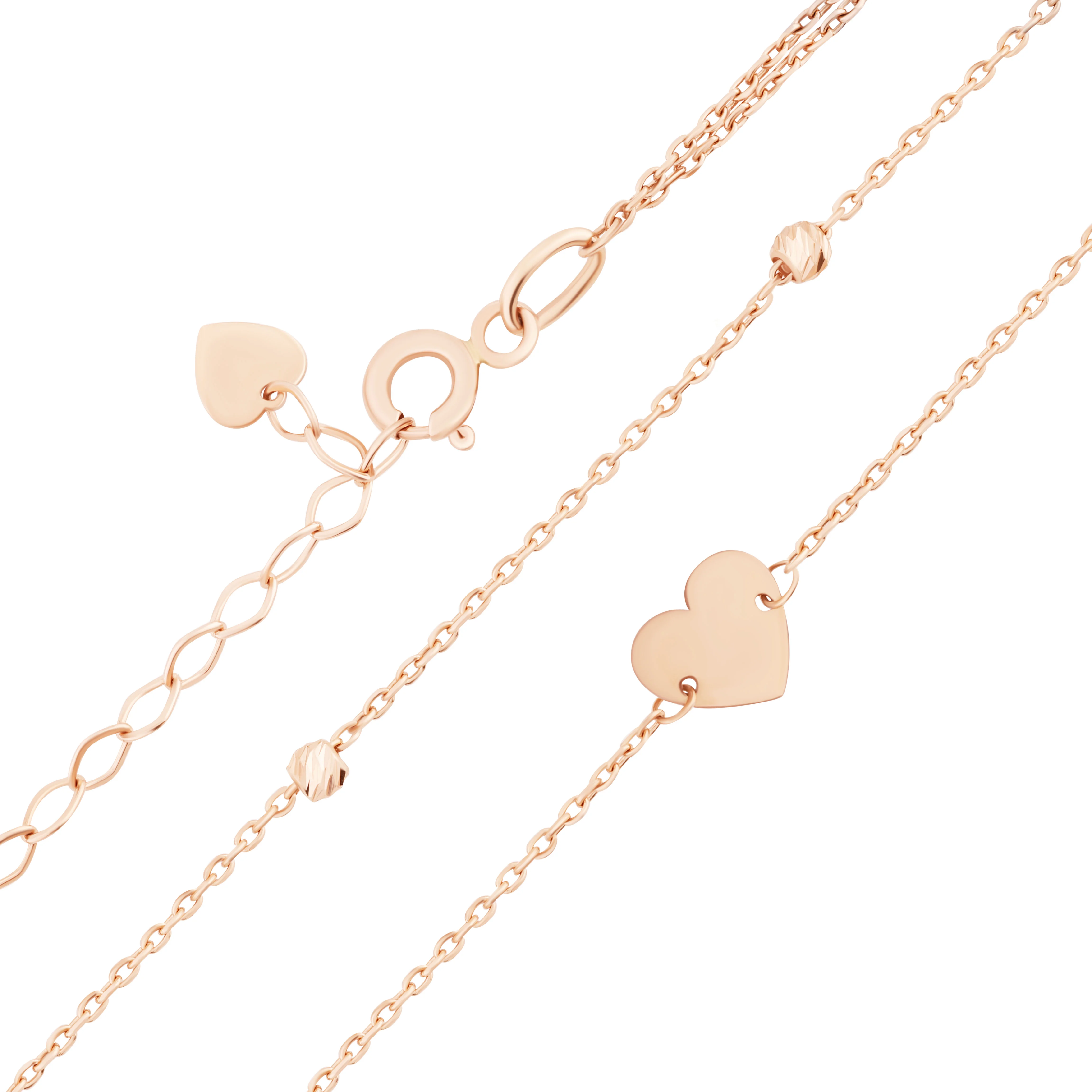Браслет подвійний із червоного золота "Кульки і серце" у якірному плетінні - 2134891