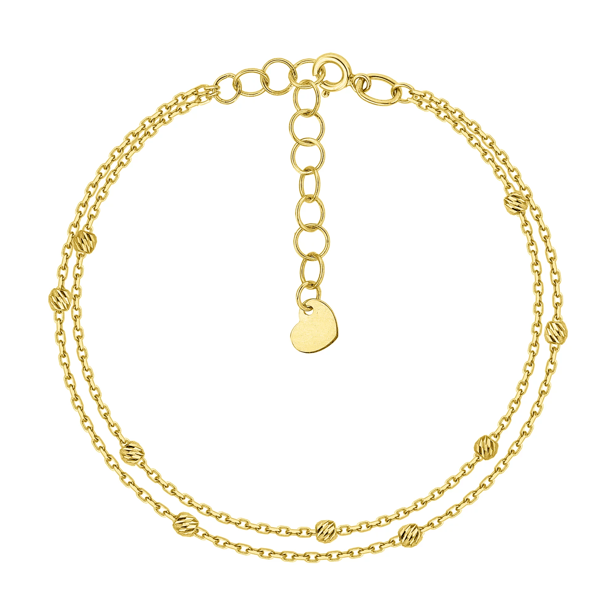 Браслет подвійний з лимонного золота з кульками якірного плетіння - 1825513