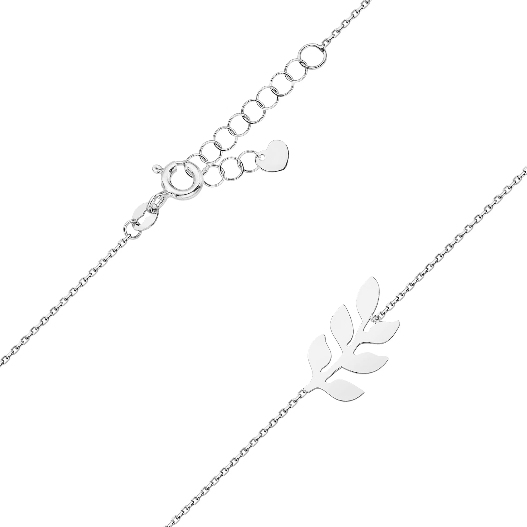 Браслет із білого золота "Листочки" у якірному плетінні - 2183066