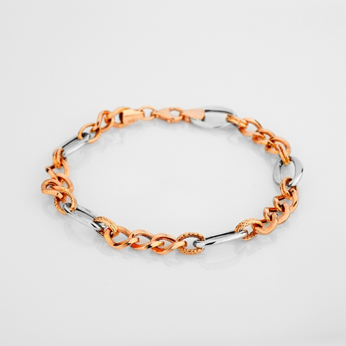 Браслет "Серце" з комбінованого золота у плетінні якір та шопард - 1657723