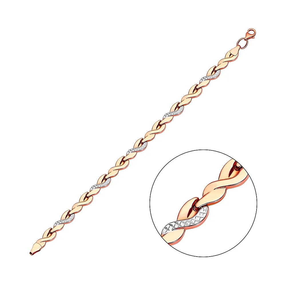 Браслет "Серце" з комбінованого золота у плетінні якір та шопард - 1657723