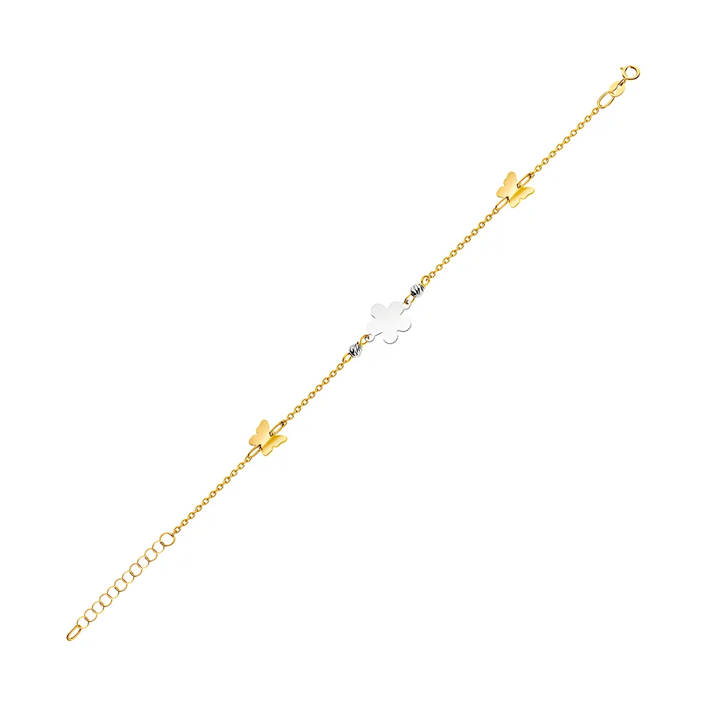 Елегантний подвійний браслет із комбінованого золота у формі квітки з діамантовою гранню та якірним плетінням - 1951431