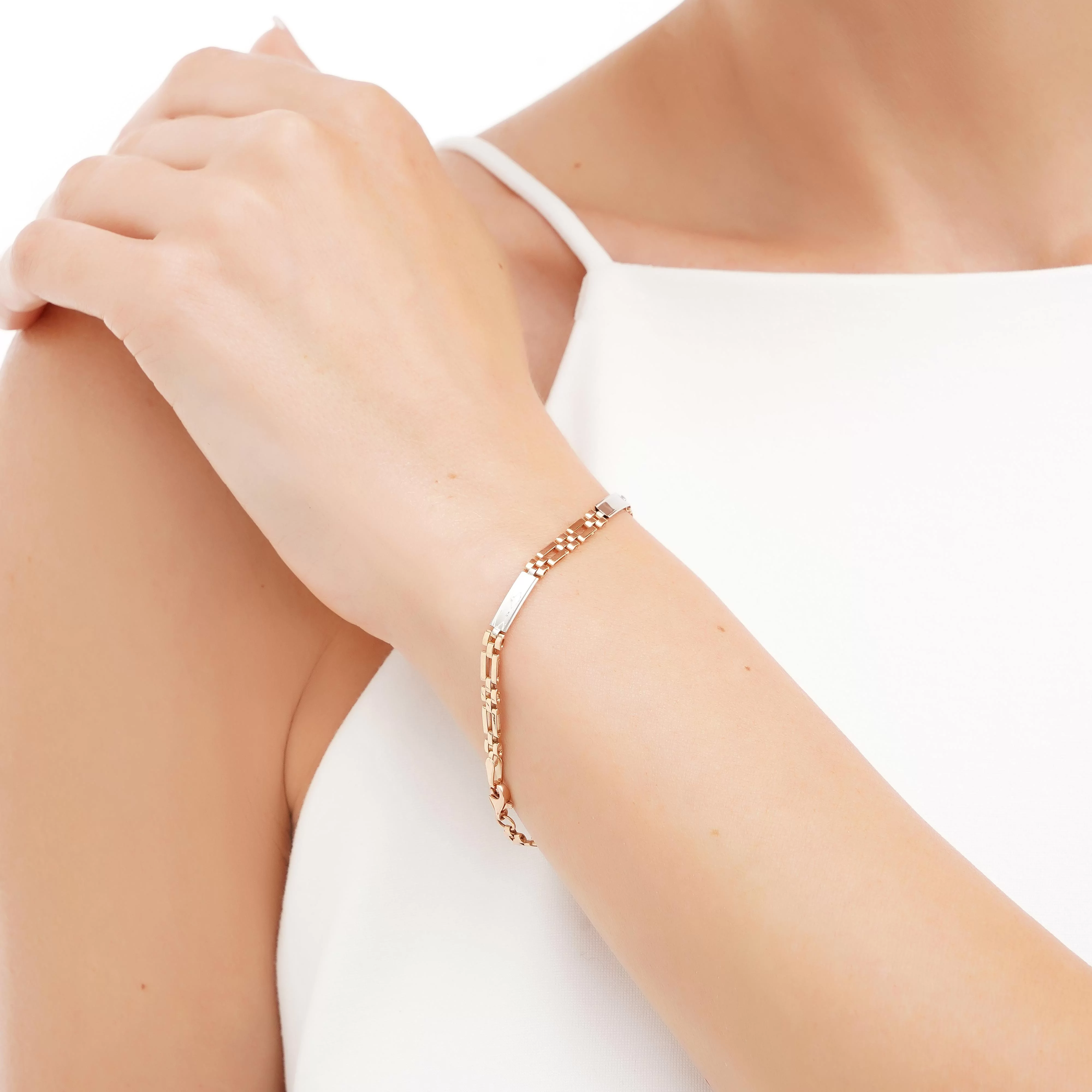 Браслет у мінімалістичному стилі з комбінованого золота з плетінням ролекс - 1945139