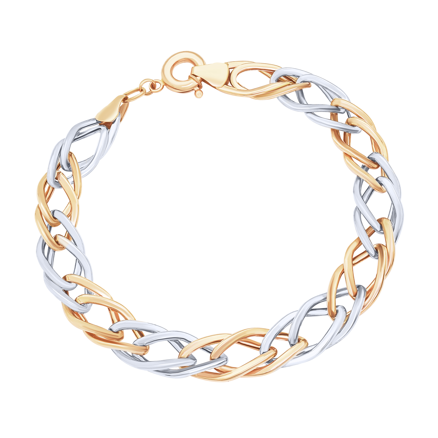 Браслет з комбінованого золота з плетінням рембо - 1716931