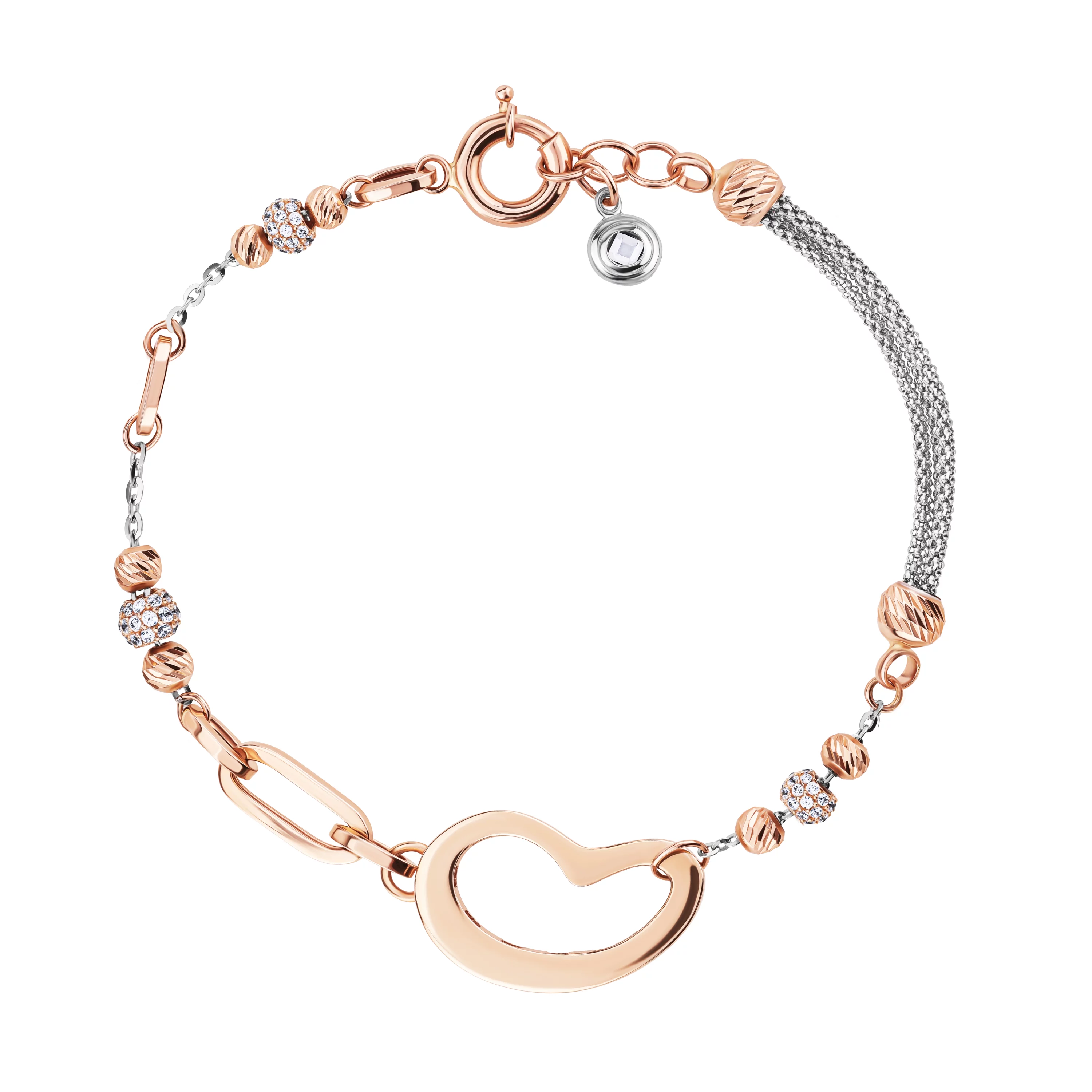 Браслет з комбінованого золота з кульками "Серце" плетіння якір - 870330