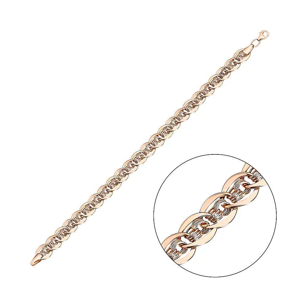 Браслет подвійний з комбінованого золота з кульками якірного плетіння - 1825514