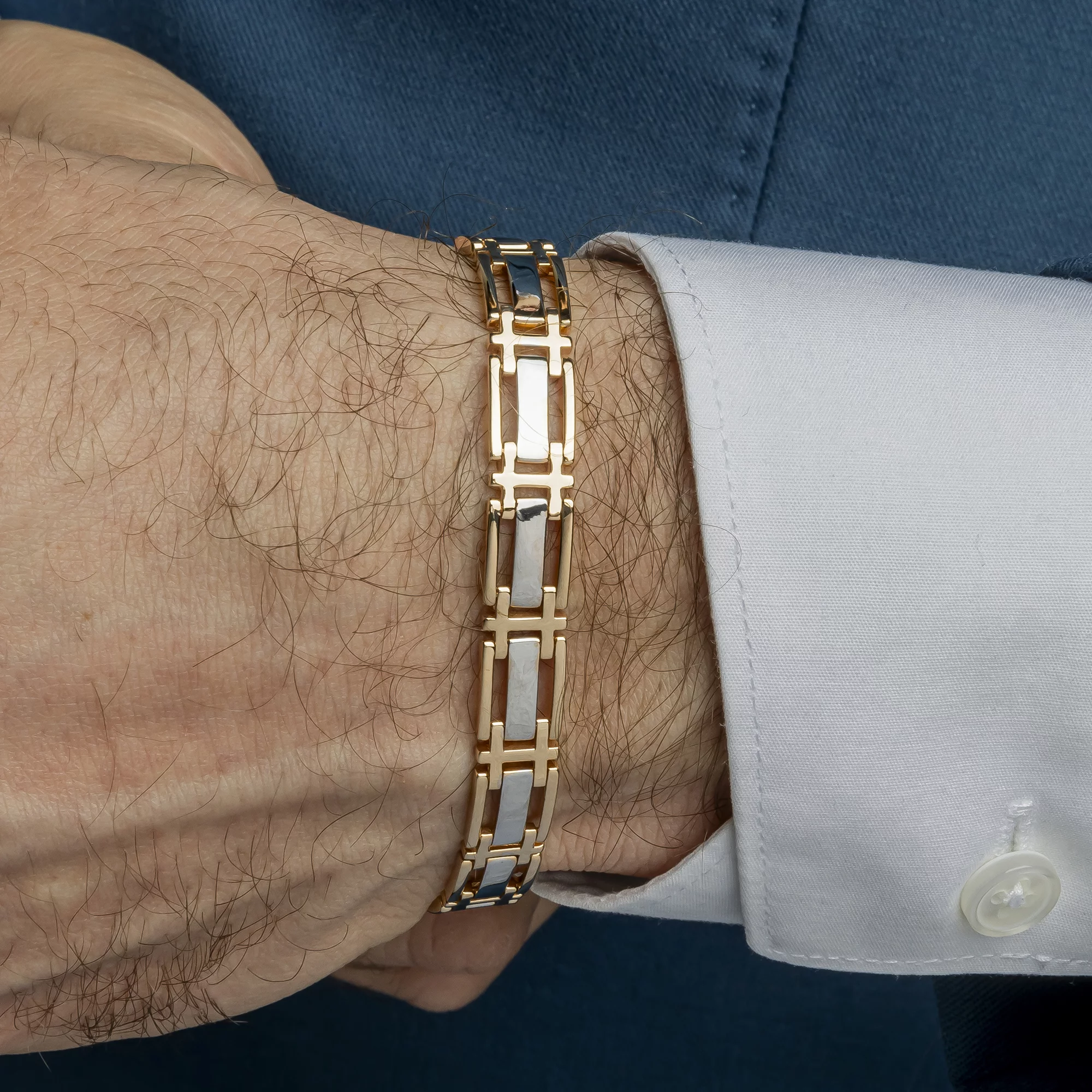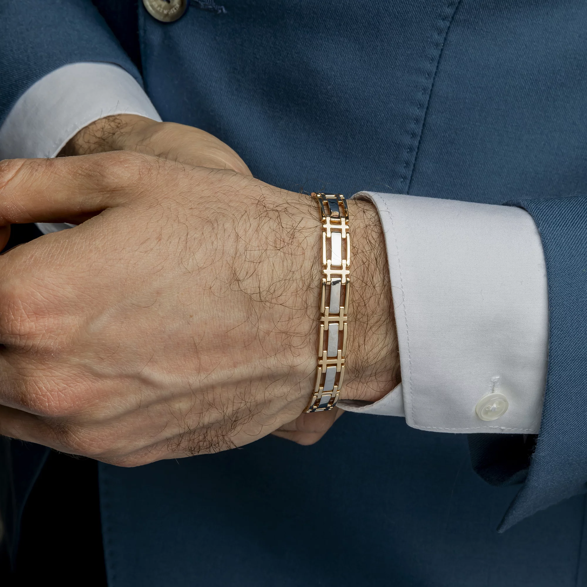 Стильний браслет у комбінованому золоті з плетінням ролекс - 1929477