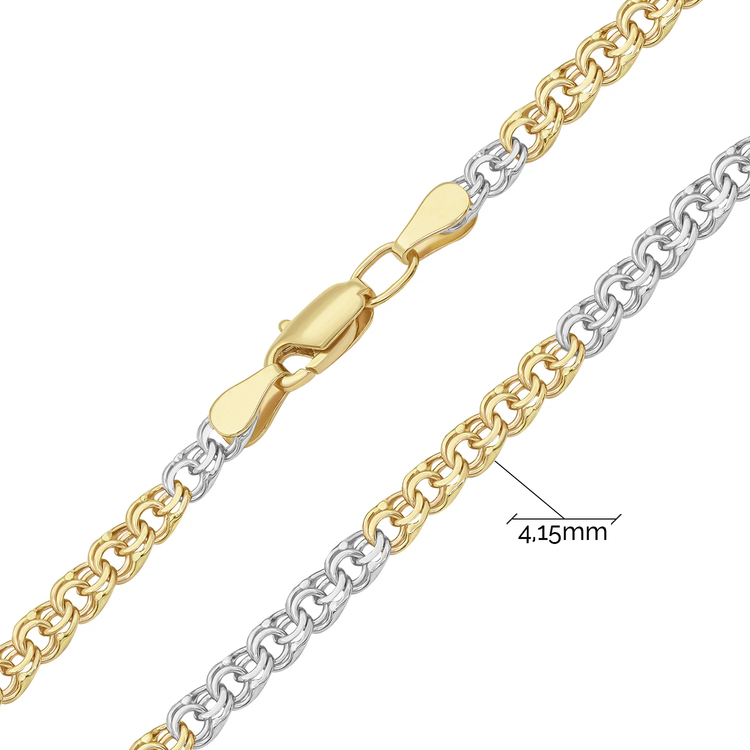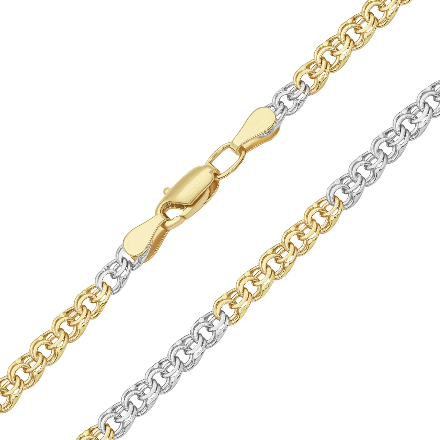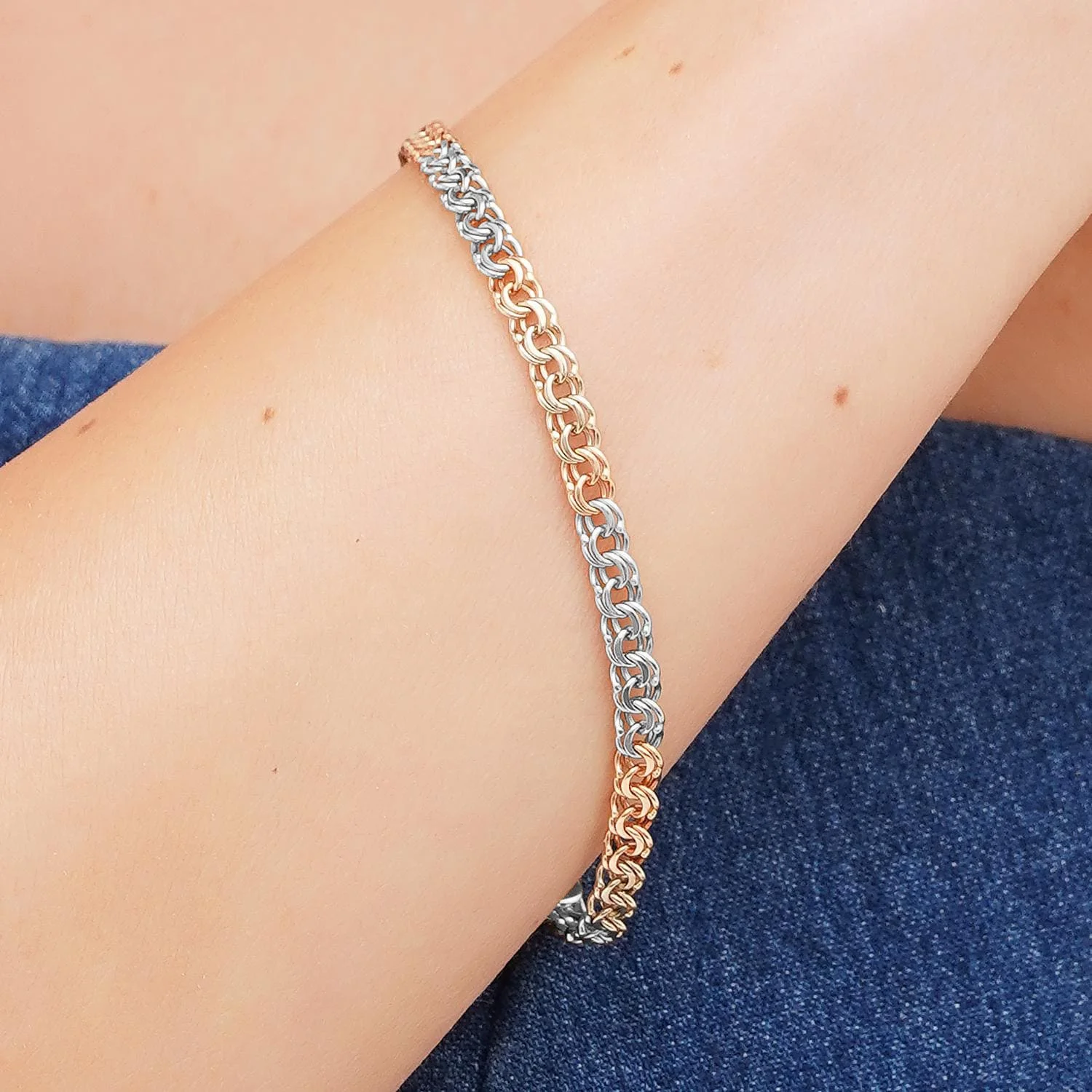Браслет "Серце" з комбінованого золота у плетінні якір та шопард - 1657723