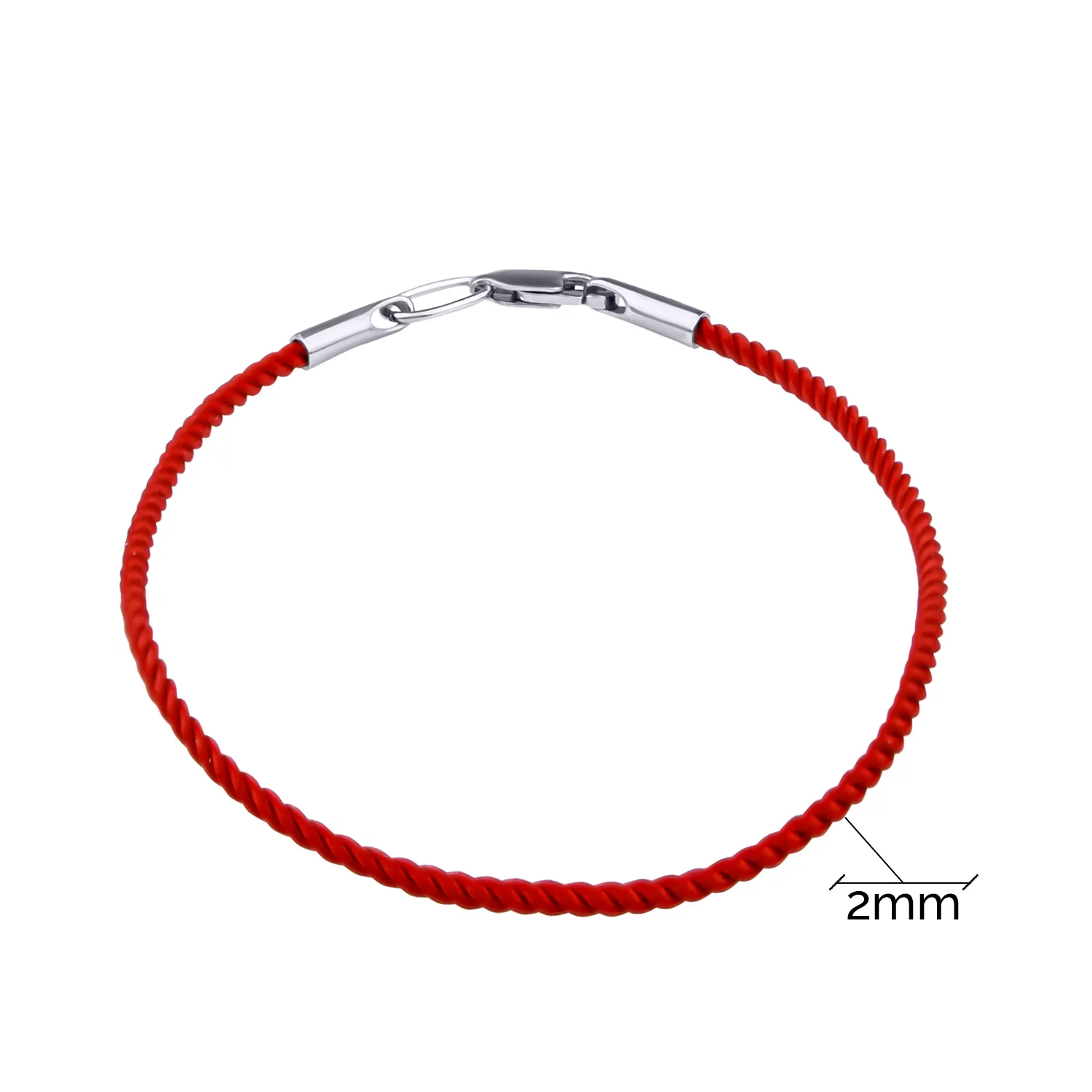 Червоний шовковий браслет зі срібною вставкою "Тризуб-Герб України" - 1706421