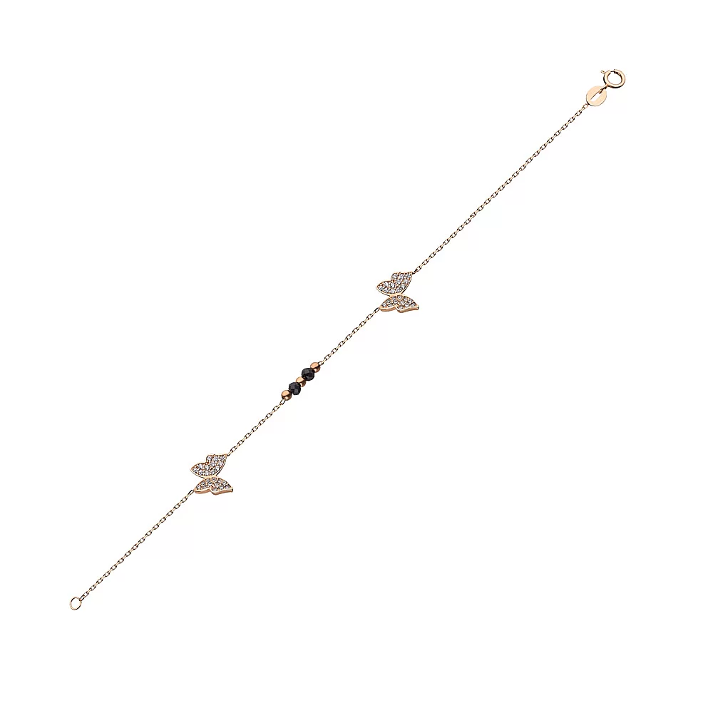 Браслет з червоного золота з фіанітами "Нескінченність" у якірному плетінні - 1807384