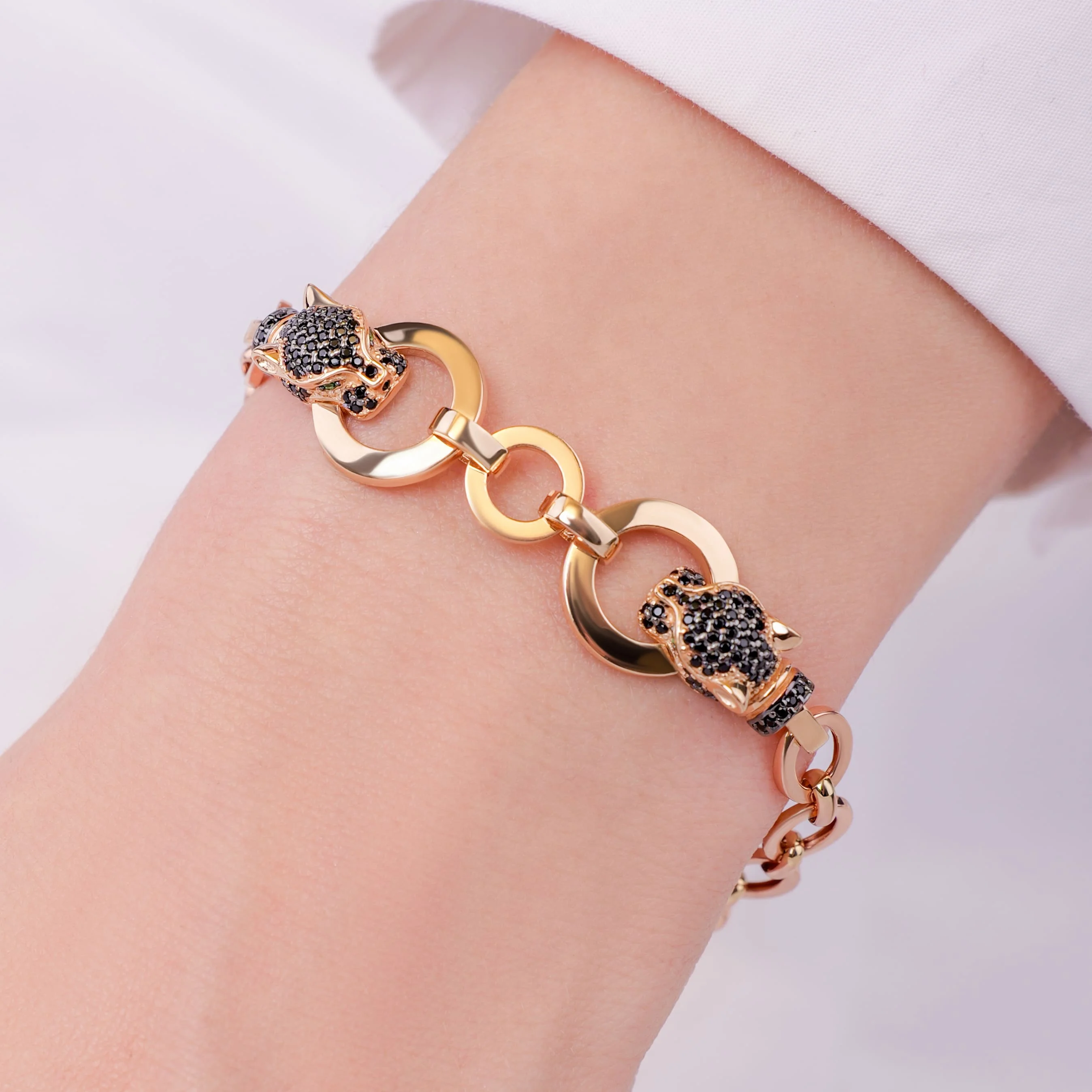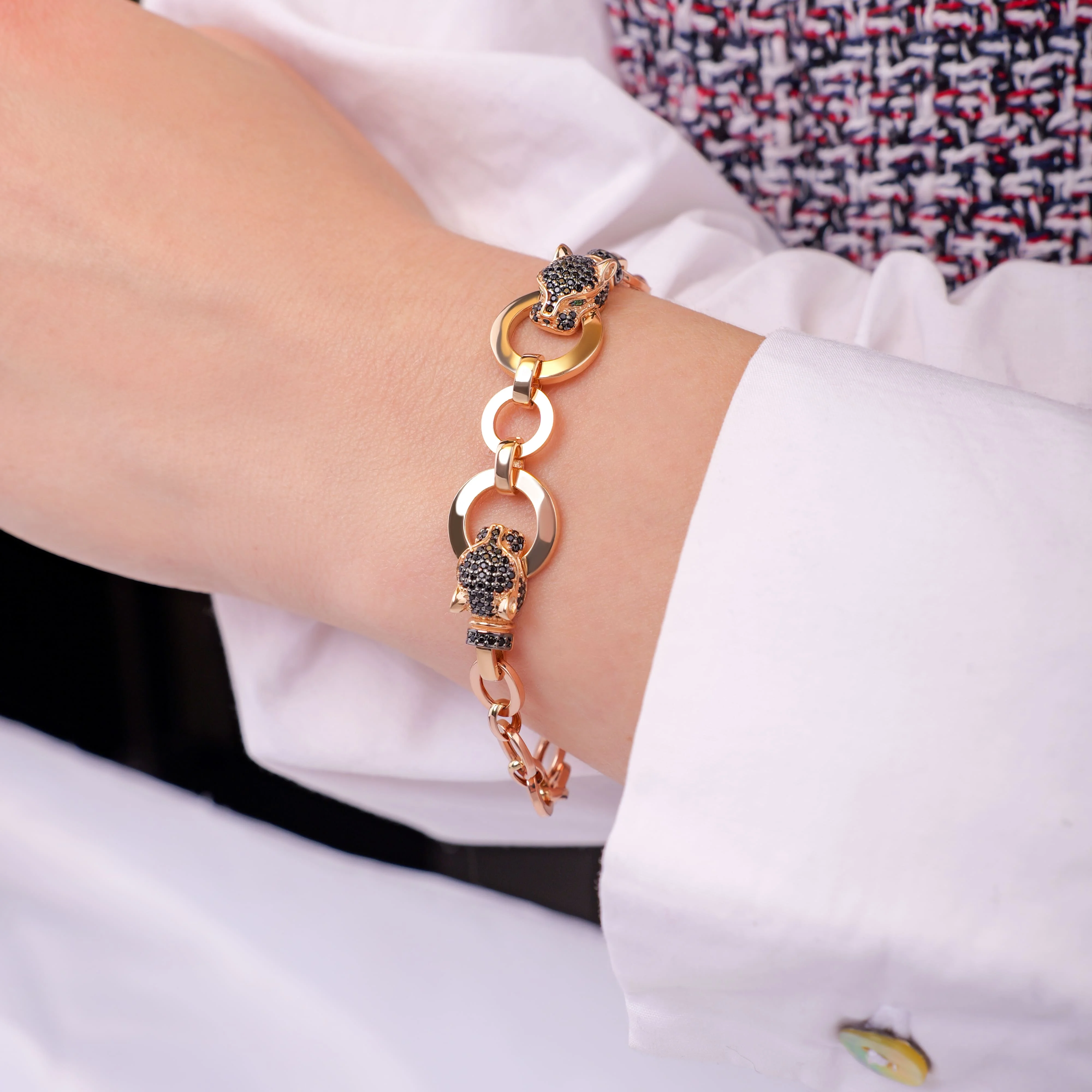 Браслет з червоного золота "Пантера" з розсипом фіанітів плетіння якір - 1976650