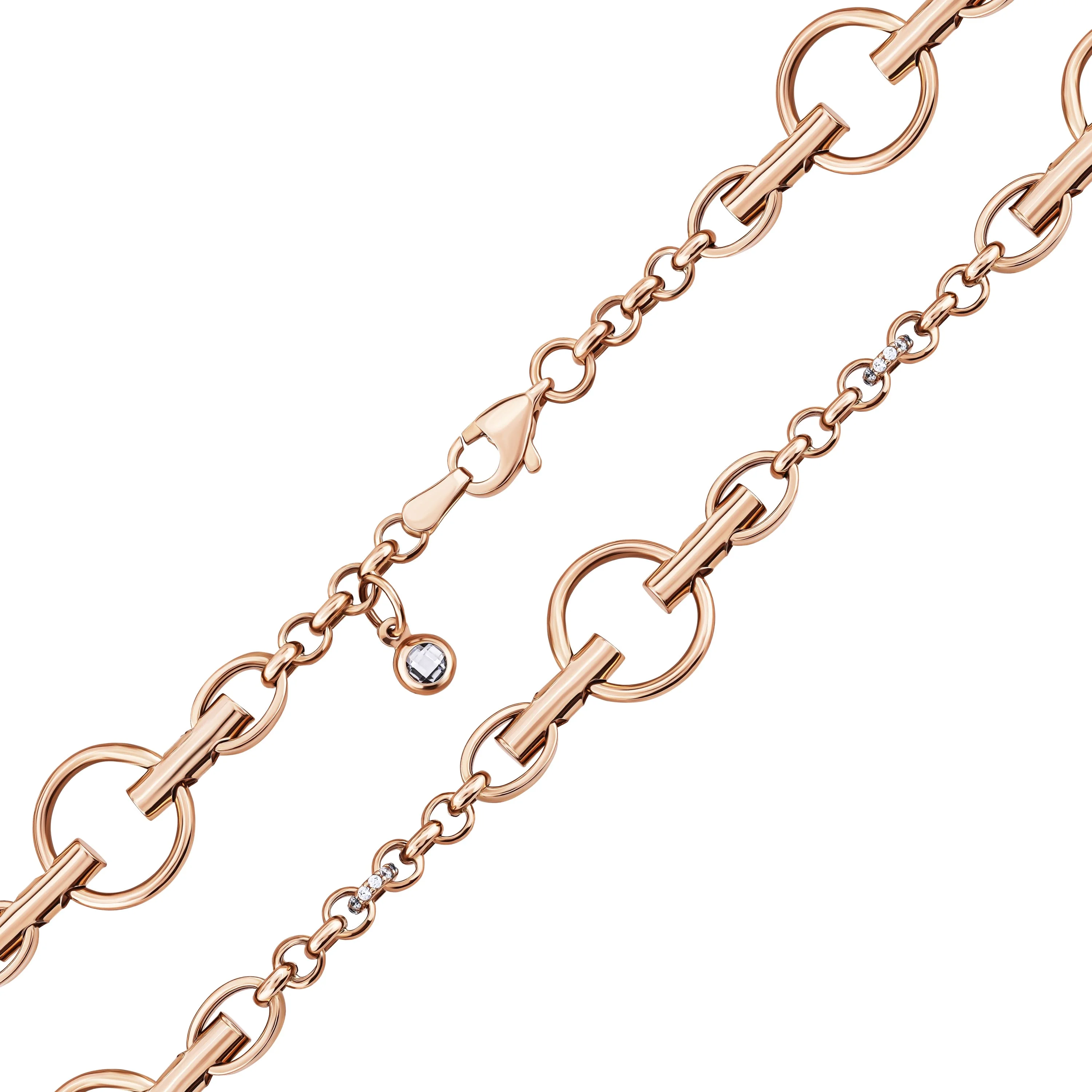 Браслет подвійний у червоному золоті з фіанітами плетіння шопард - 1920627