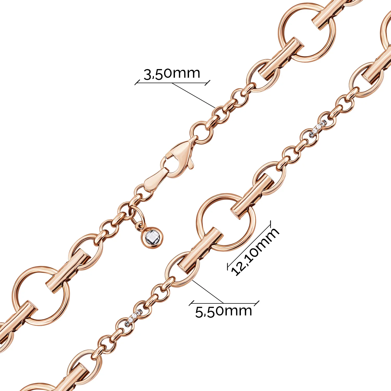 Браслет у мінімалістичному стилі з алмазною гранню в червоному золоті та якірним плетінням - 1858739