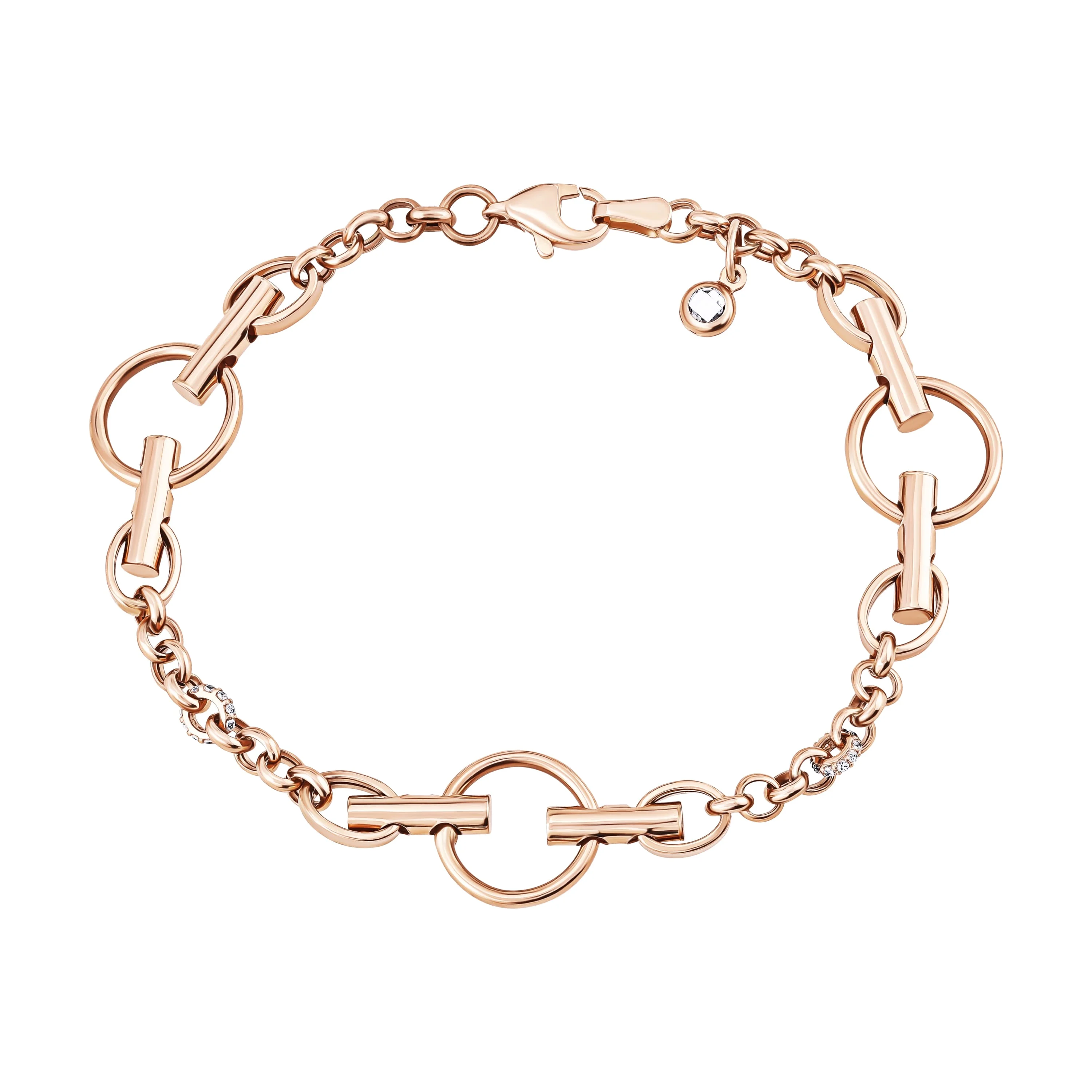 Браслет з червоного золота з підвісками і фіанітом в плетінні якір та шопард - 963836