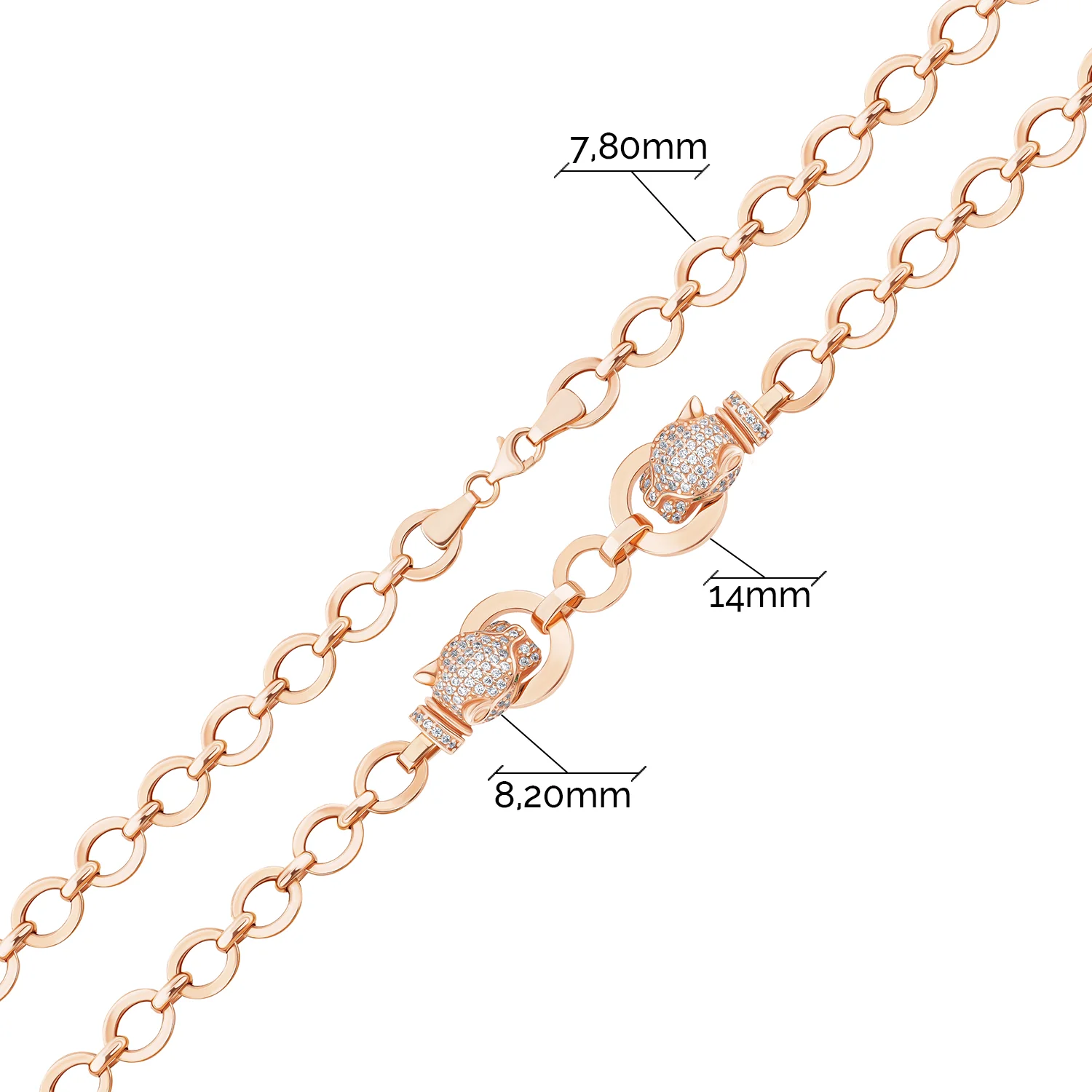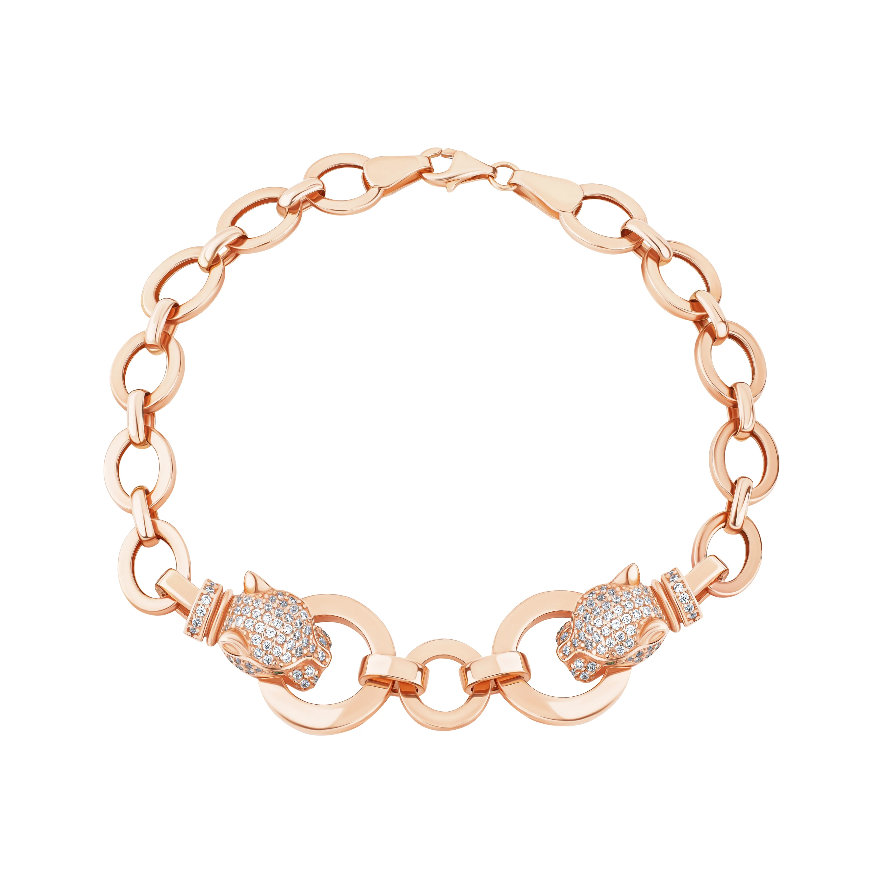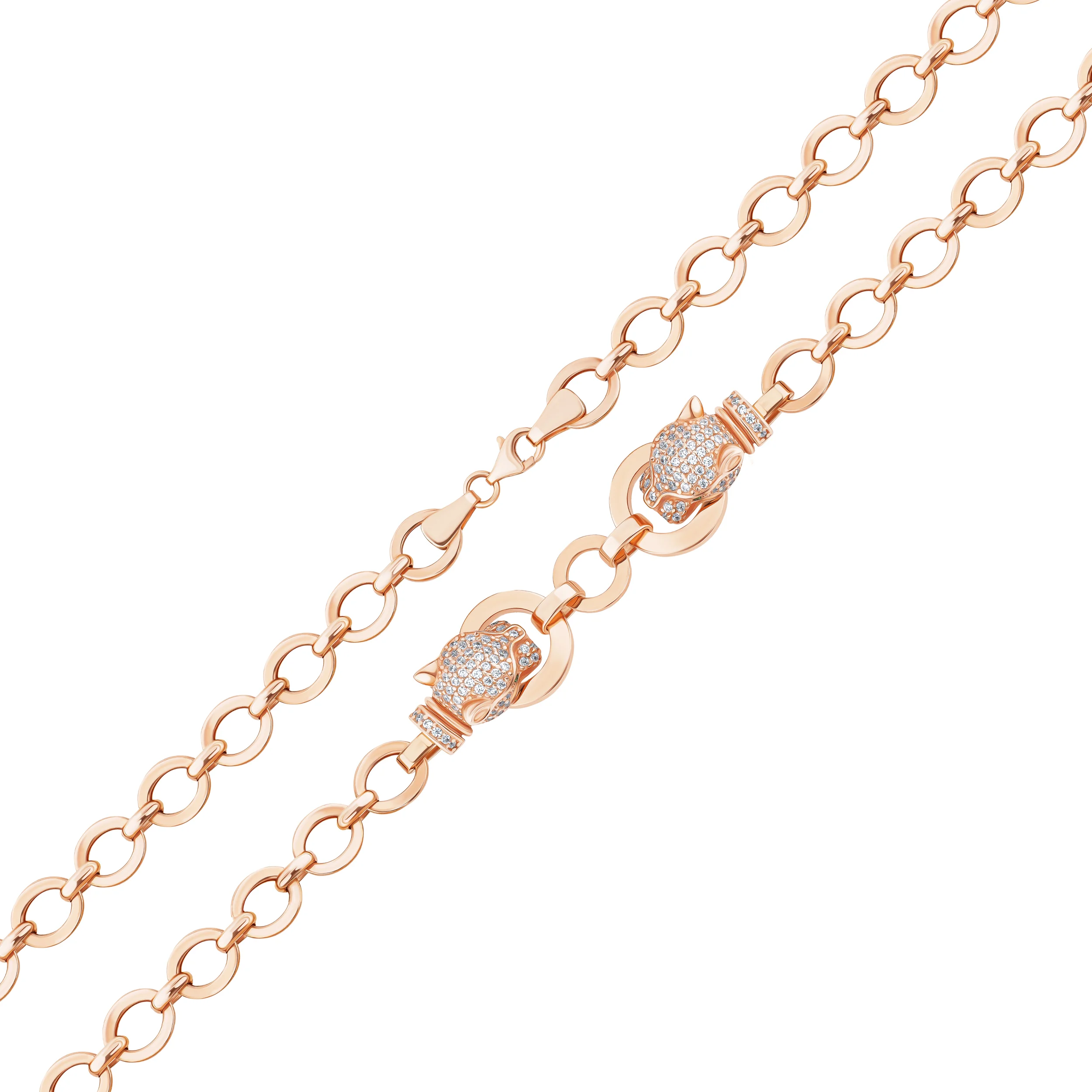 Браслет з червоного золота з розсипом фіанітів "Пантера" плетіння якір - 1976649