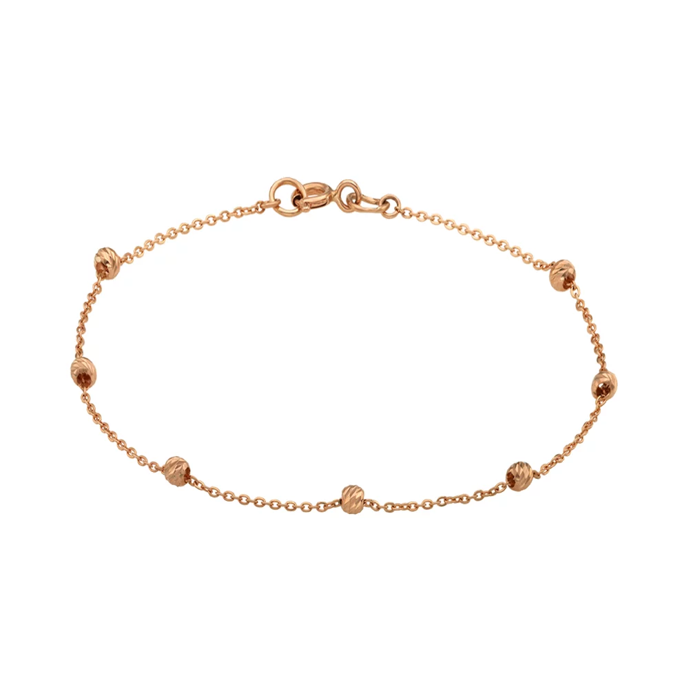 Браслет із червоного золота "Кульки" в якірному плетінні - 1443521