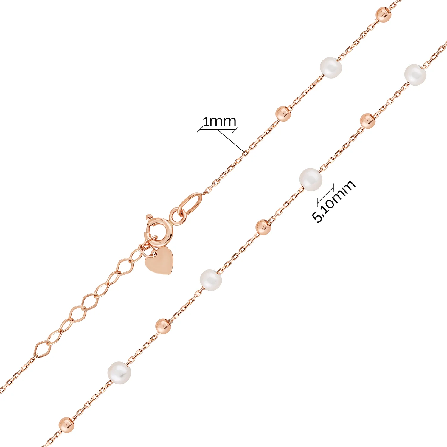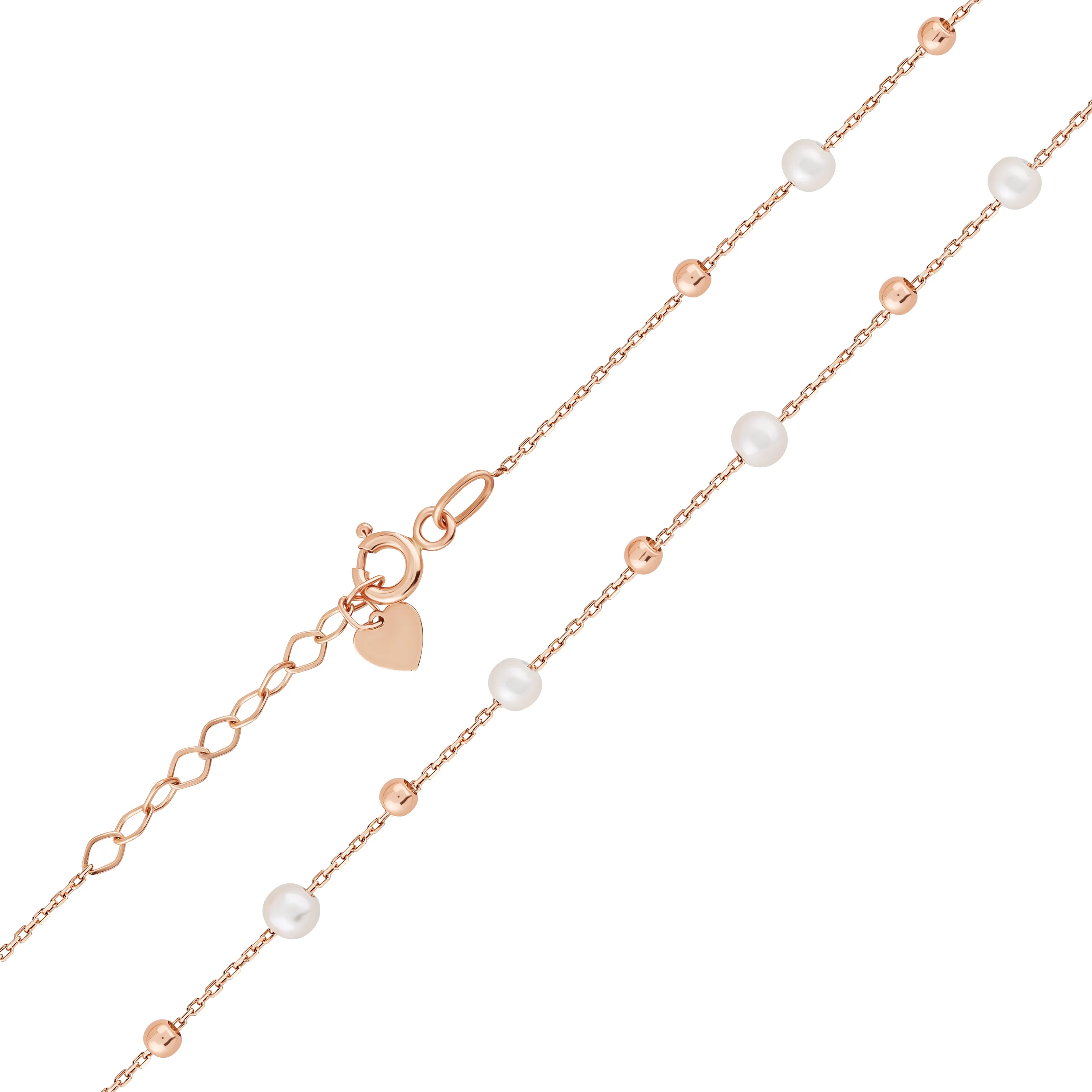 Браслет з червоного золота з перлами та кульками якірне плетіння - 2102108
