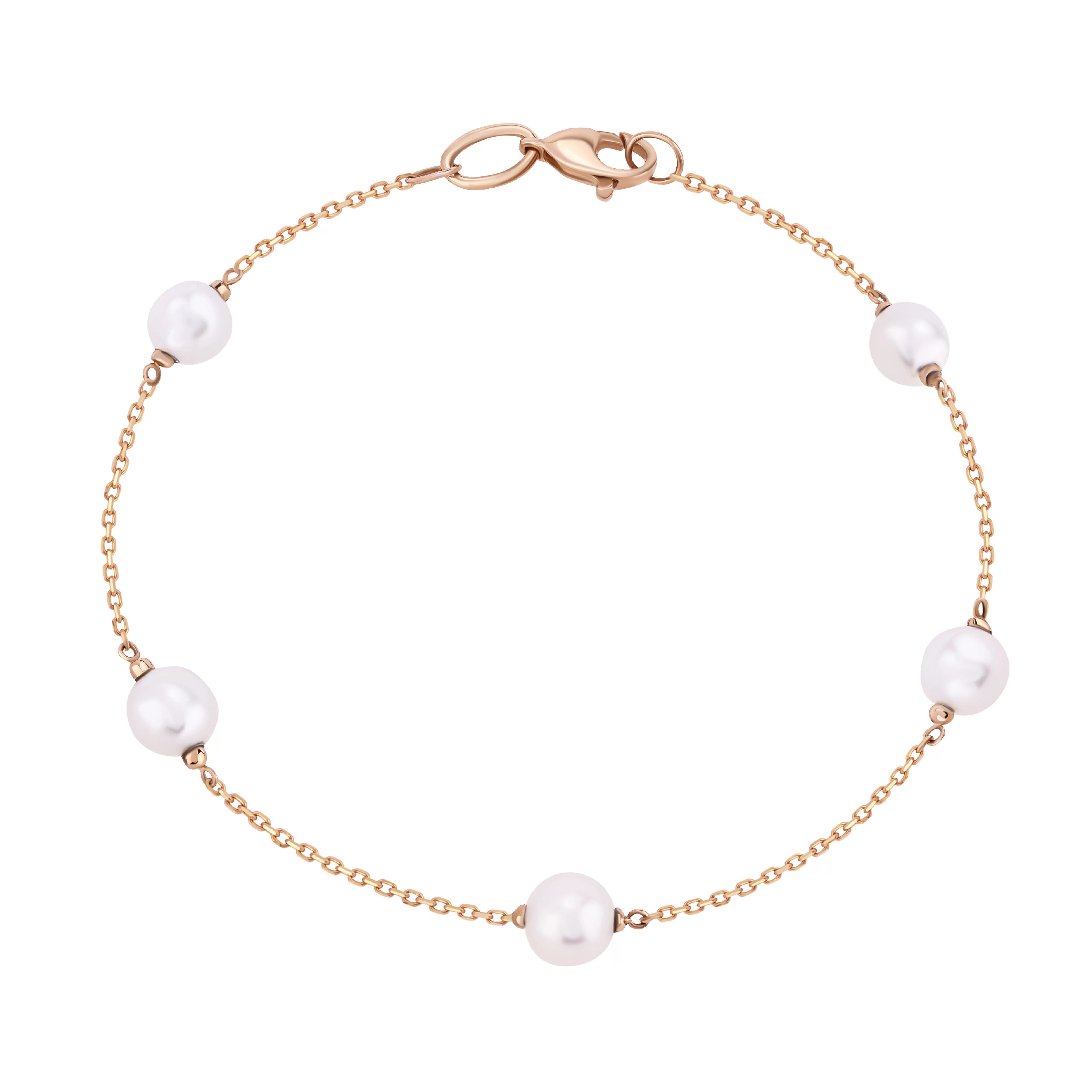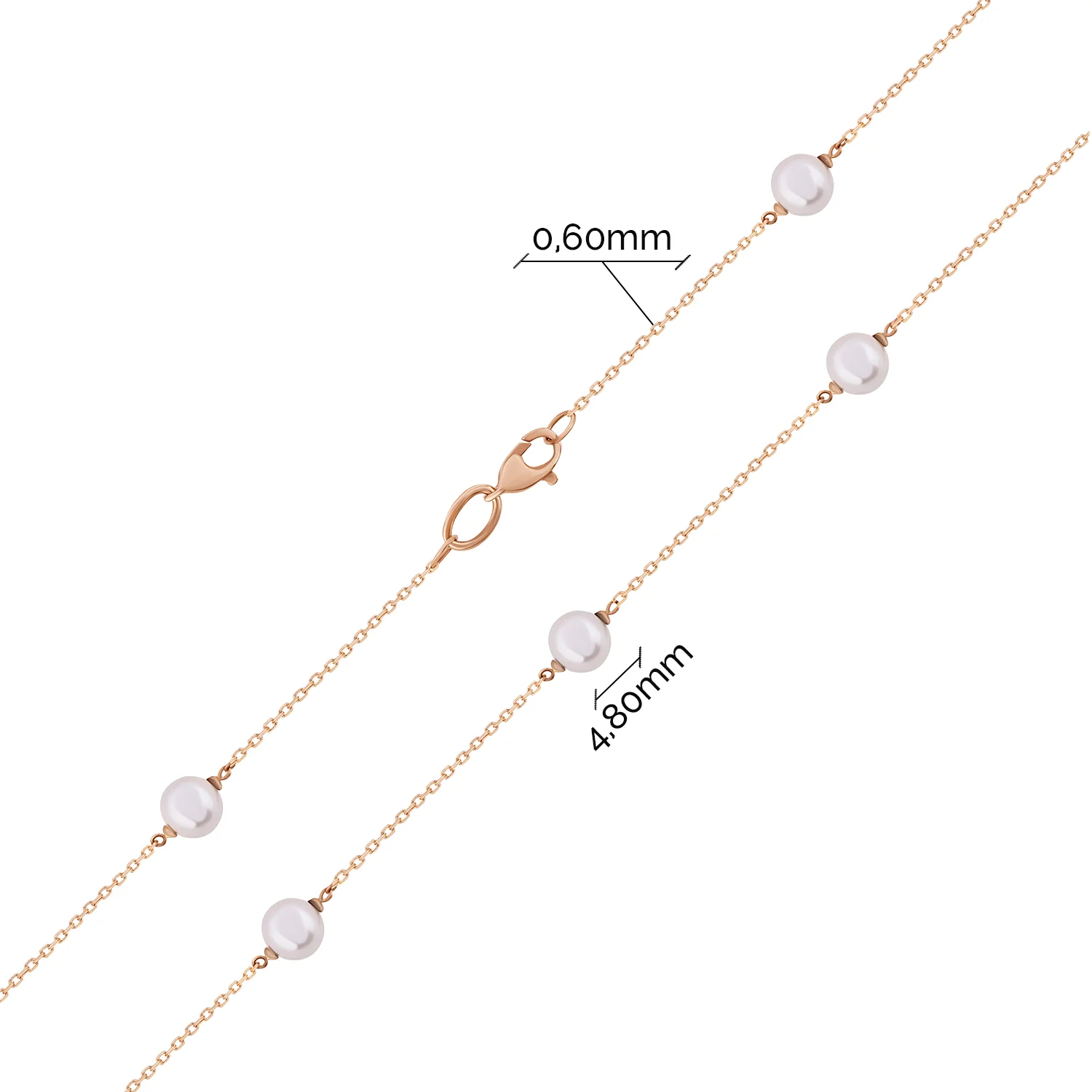 Браслет з червоного золота "Квітка" та фіанітами плетіння якір та шопард - 1641565