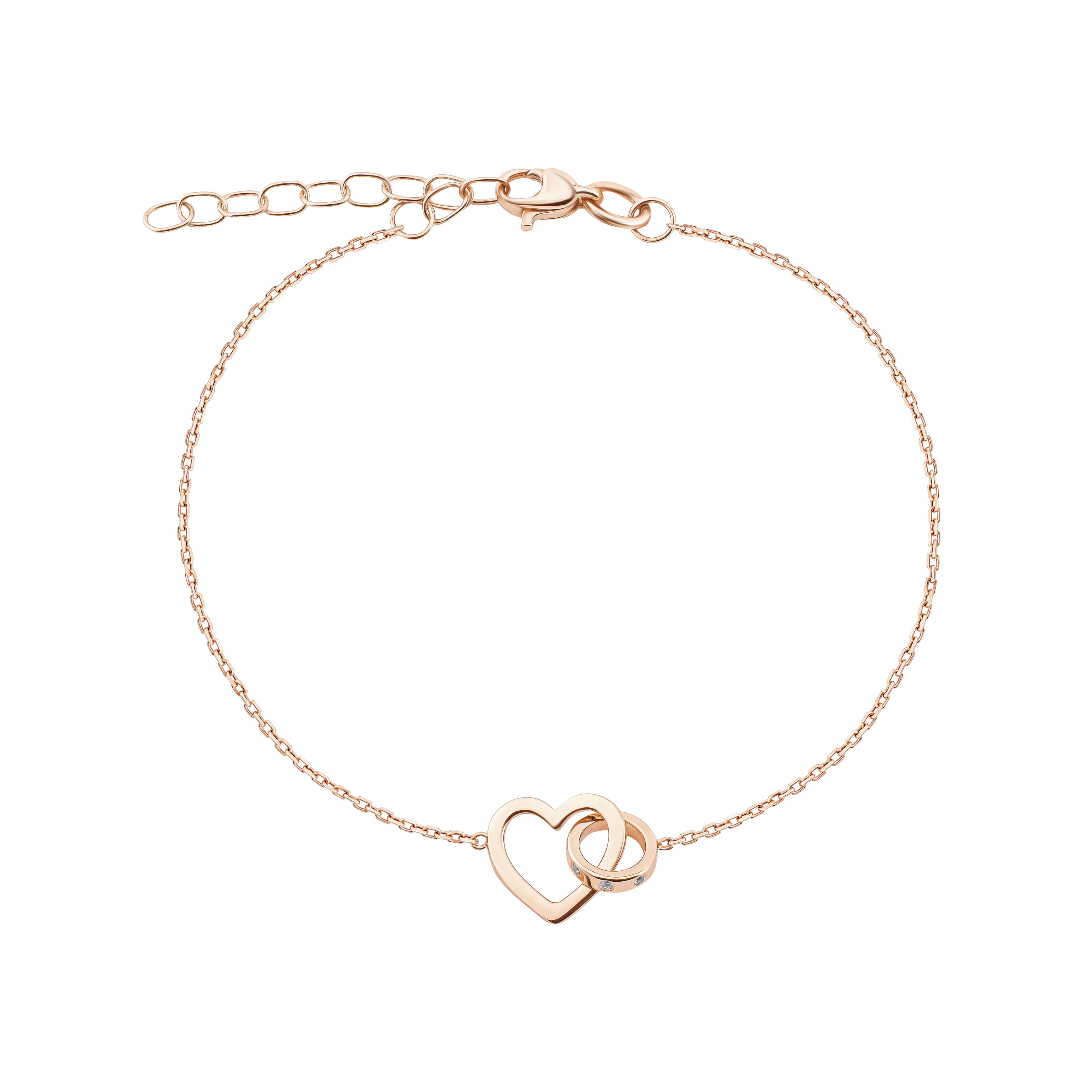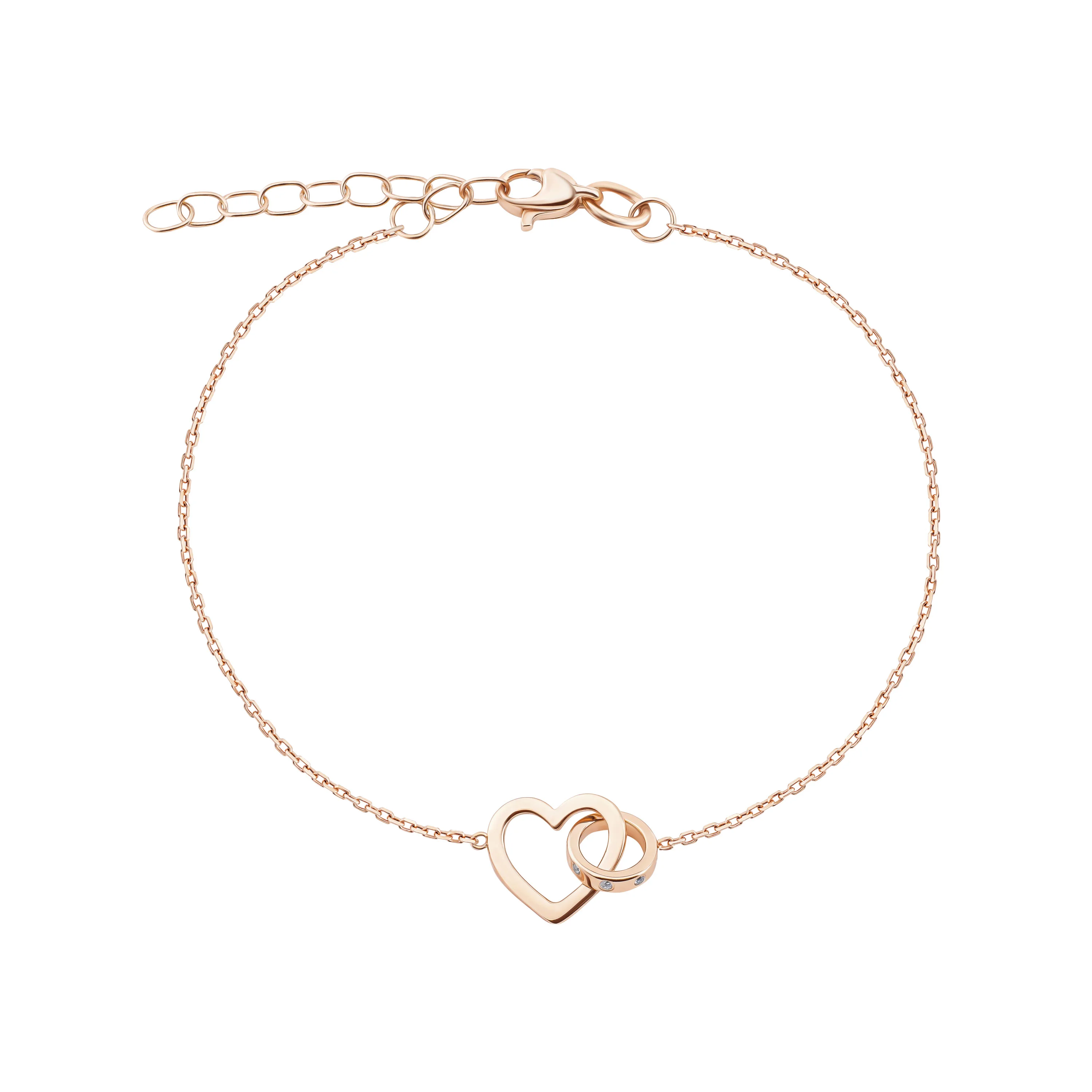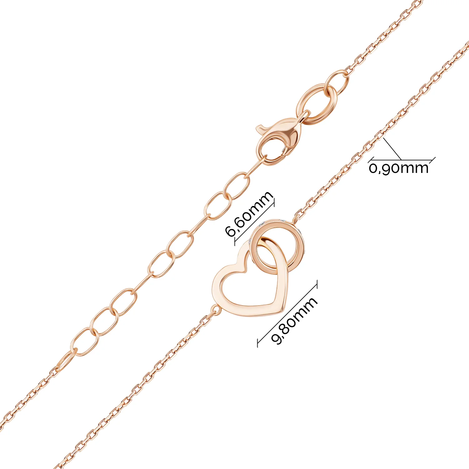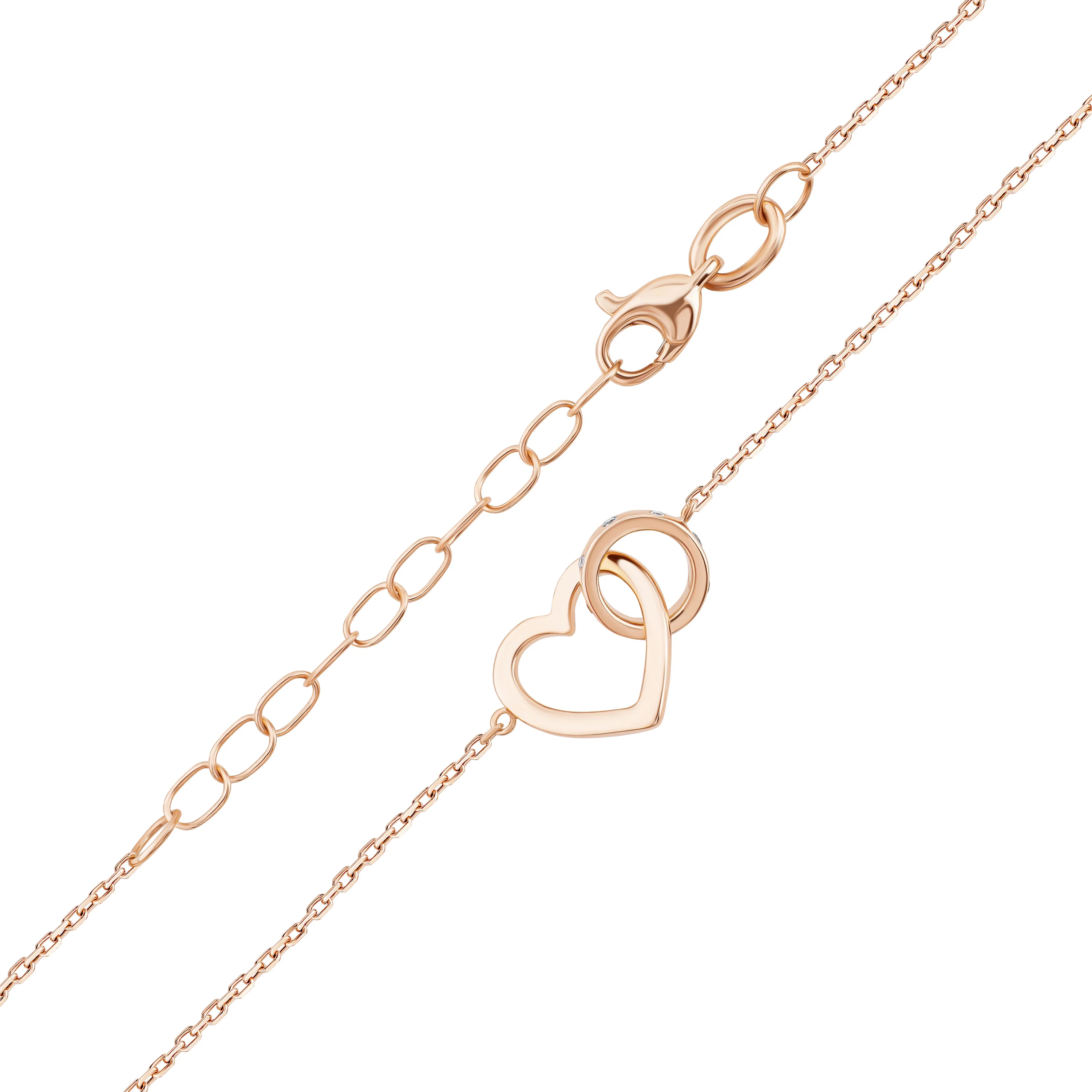 Браслет з червоного золота "Серце" з фіанітами плетіння якір - 2147280