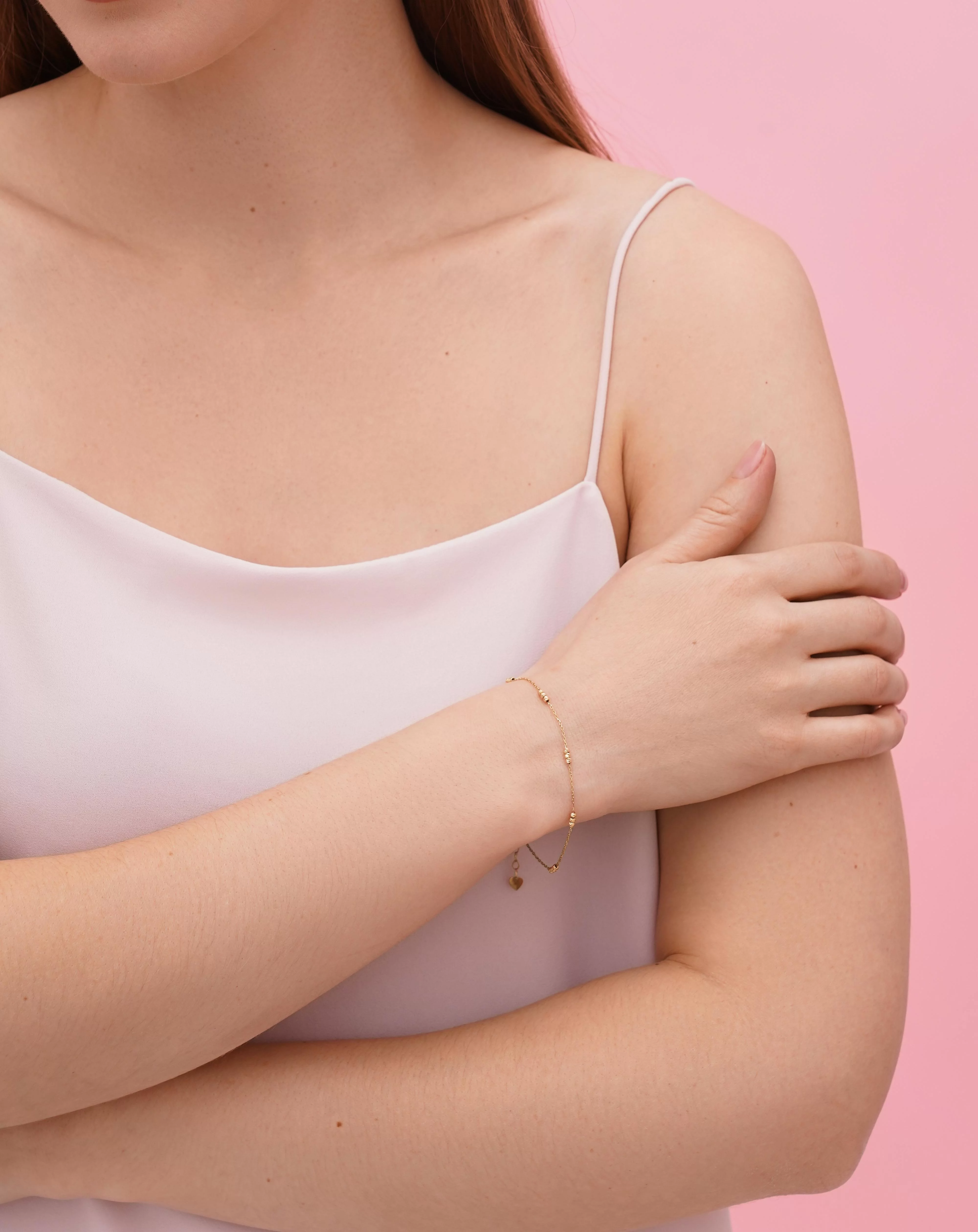 Браслет із червоного золота "Кульки" плетіння якір - 1545161