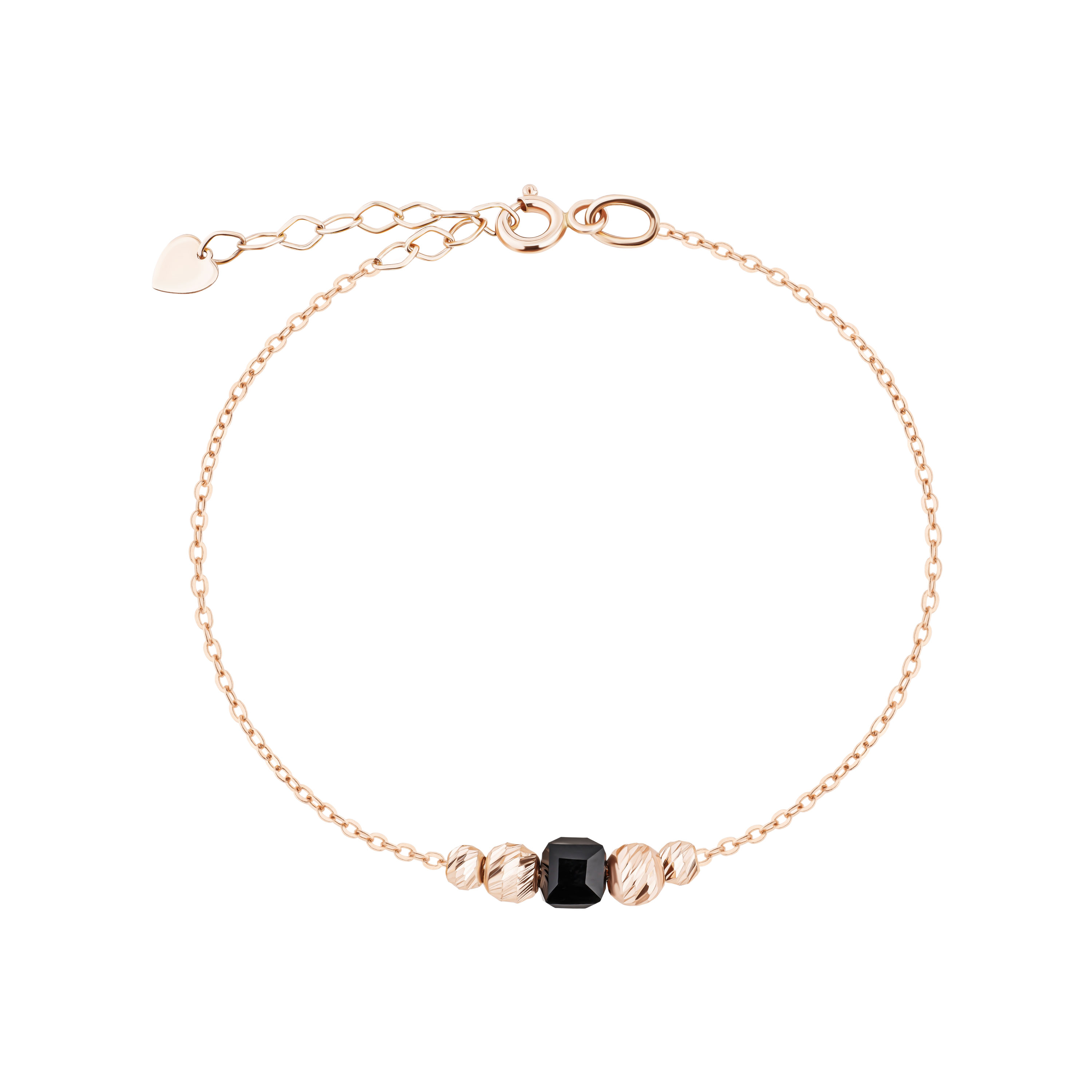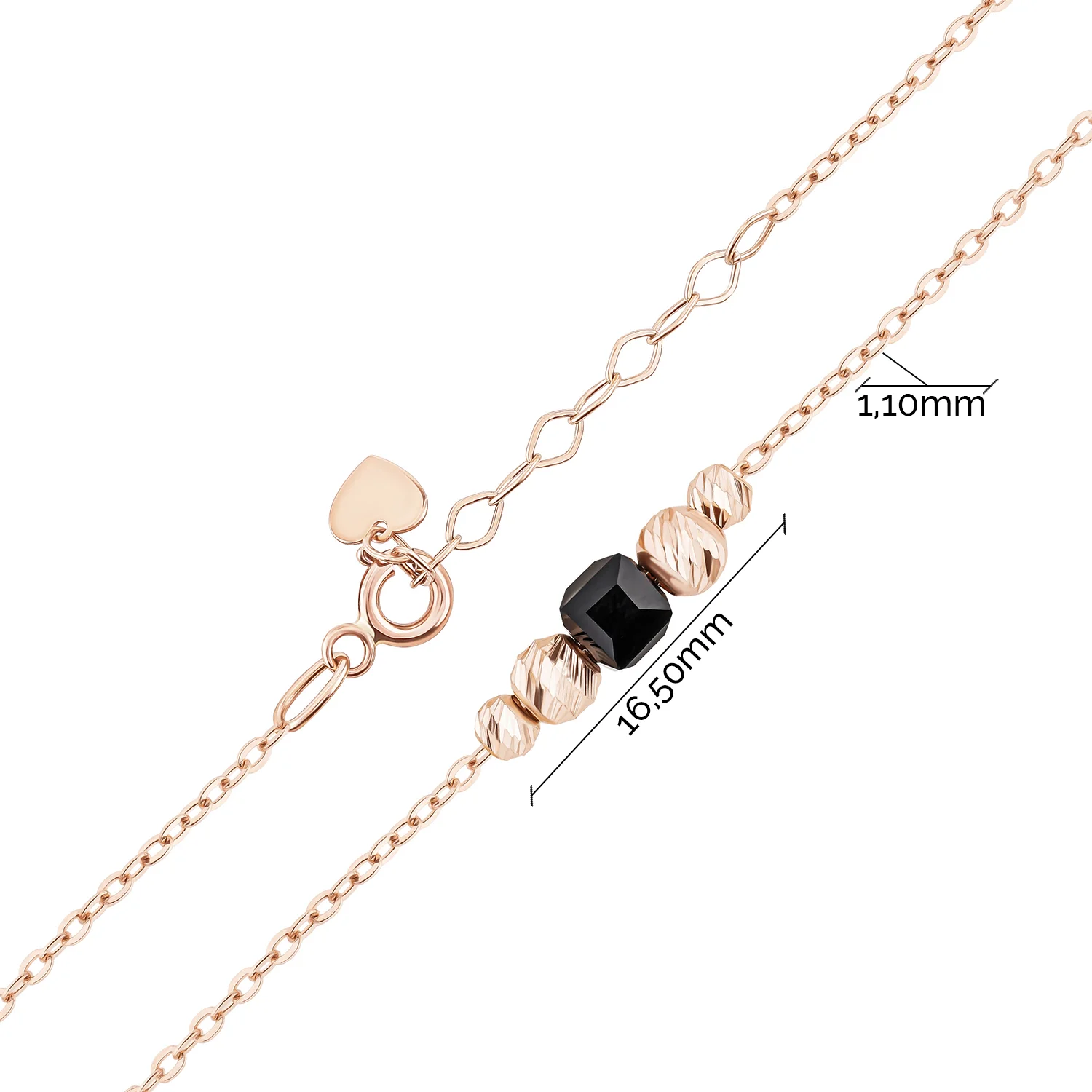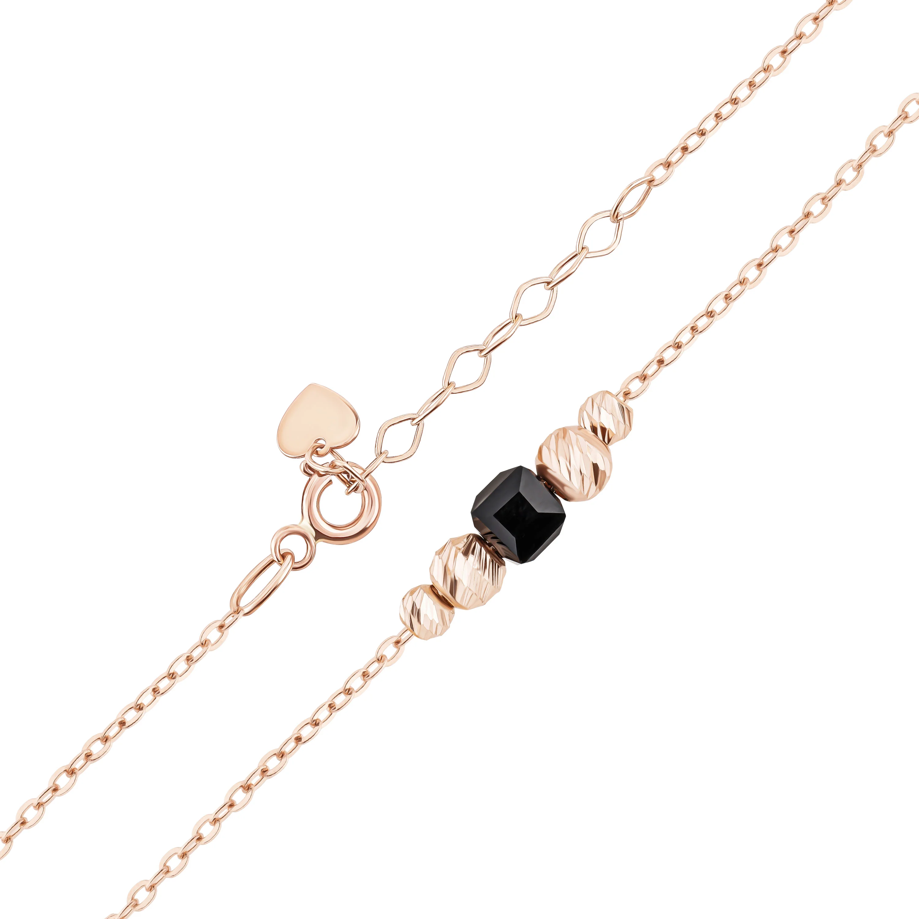 Браслет з червоного золота "Кульки" з оніксом плетіння якір - 2147261