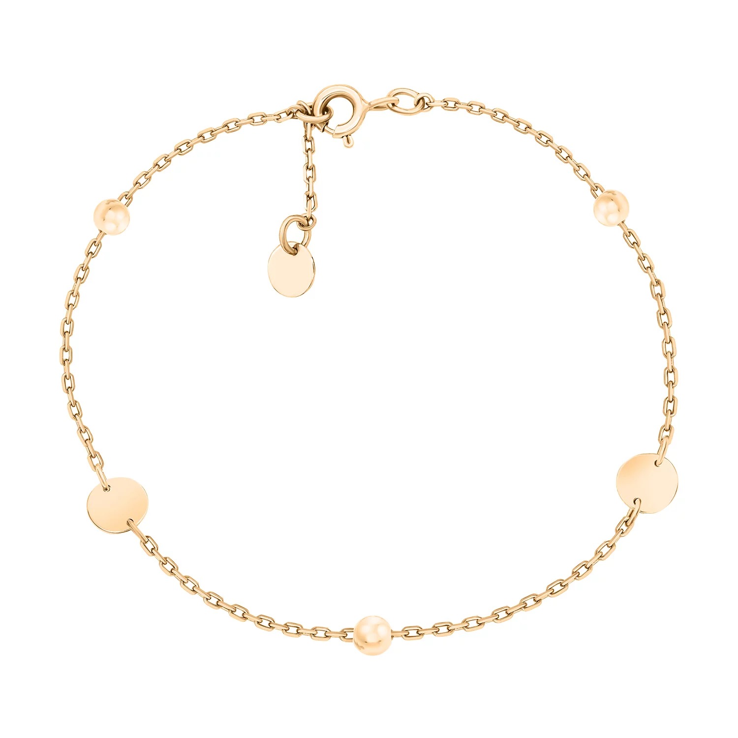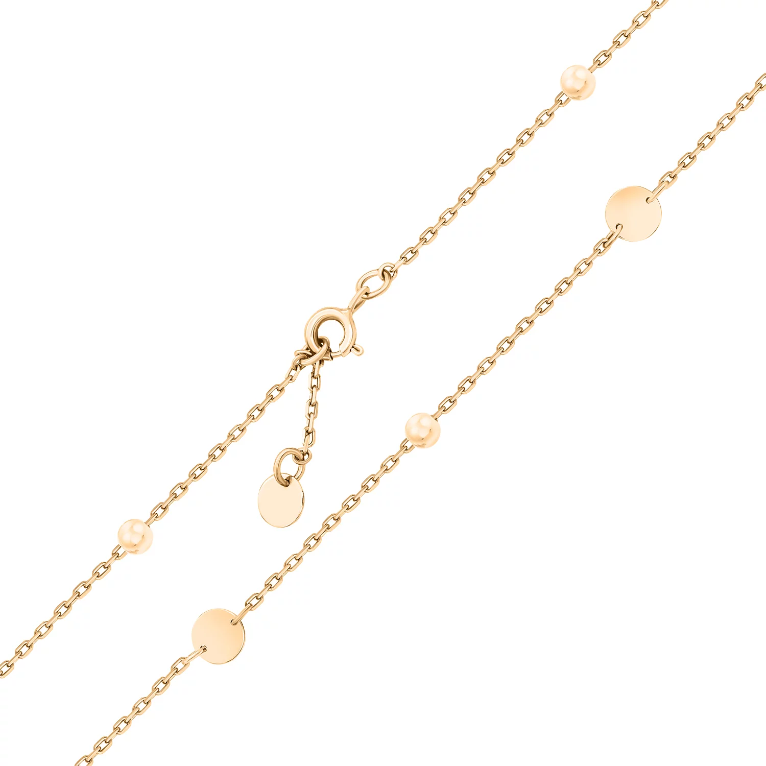 Браслет з червоного золота з кульками і монетками в якірному плетінні - 890884