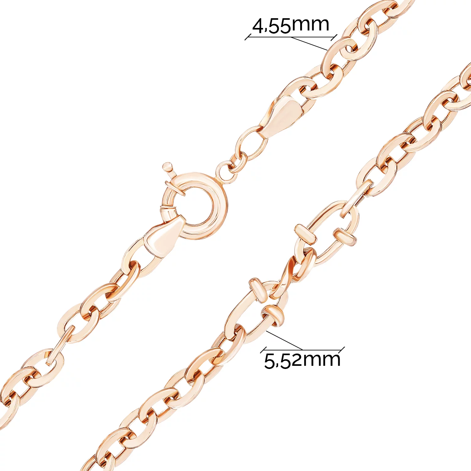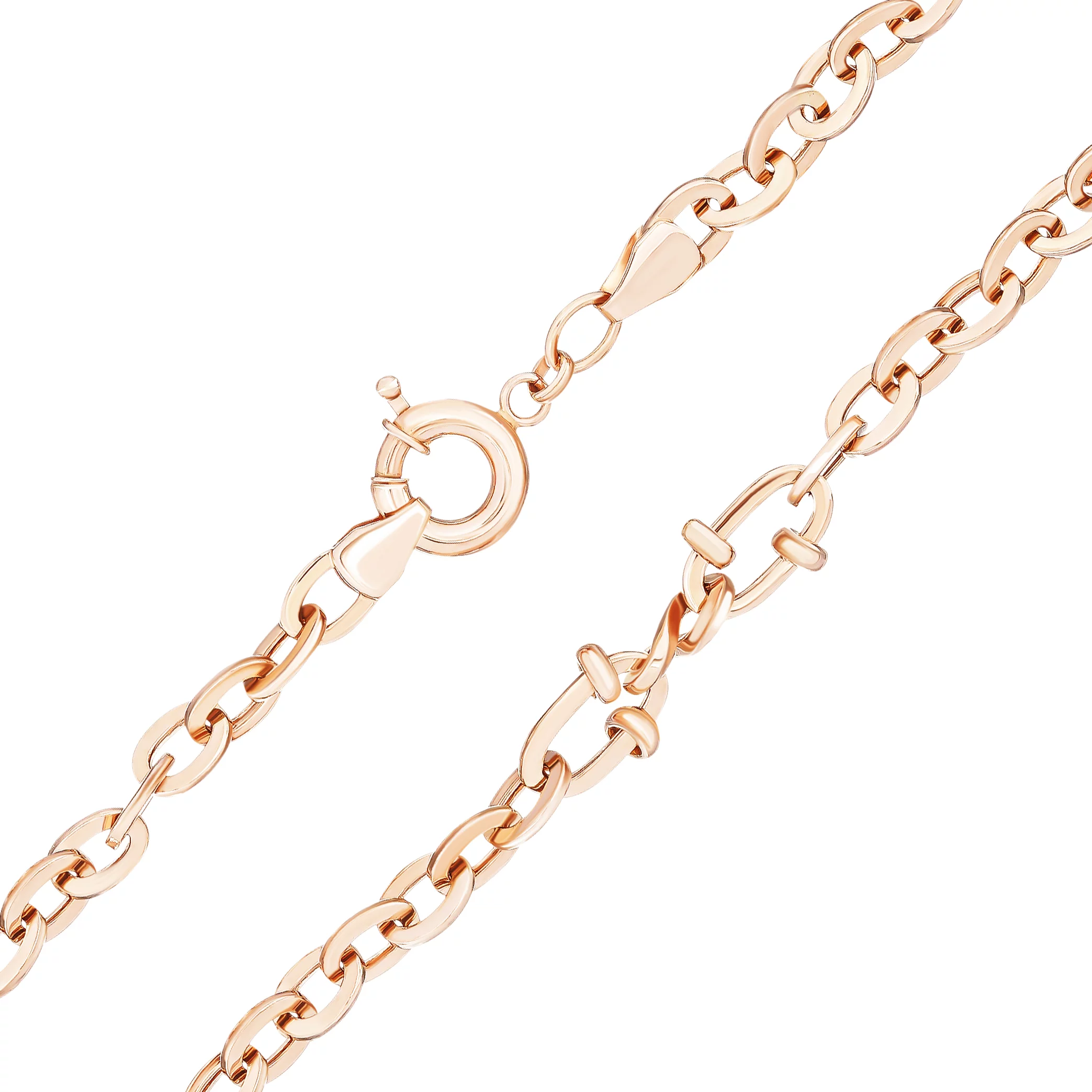 Браслет з червоного золота з кульками та алмазною гранню плетіння якір - 1698647