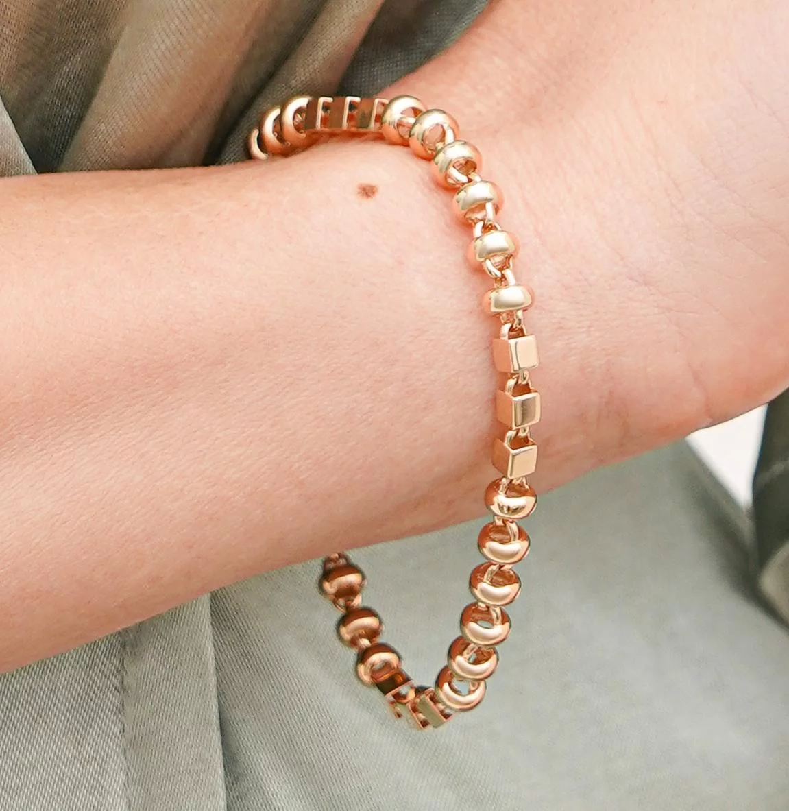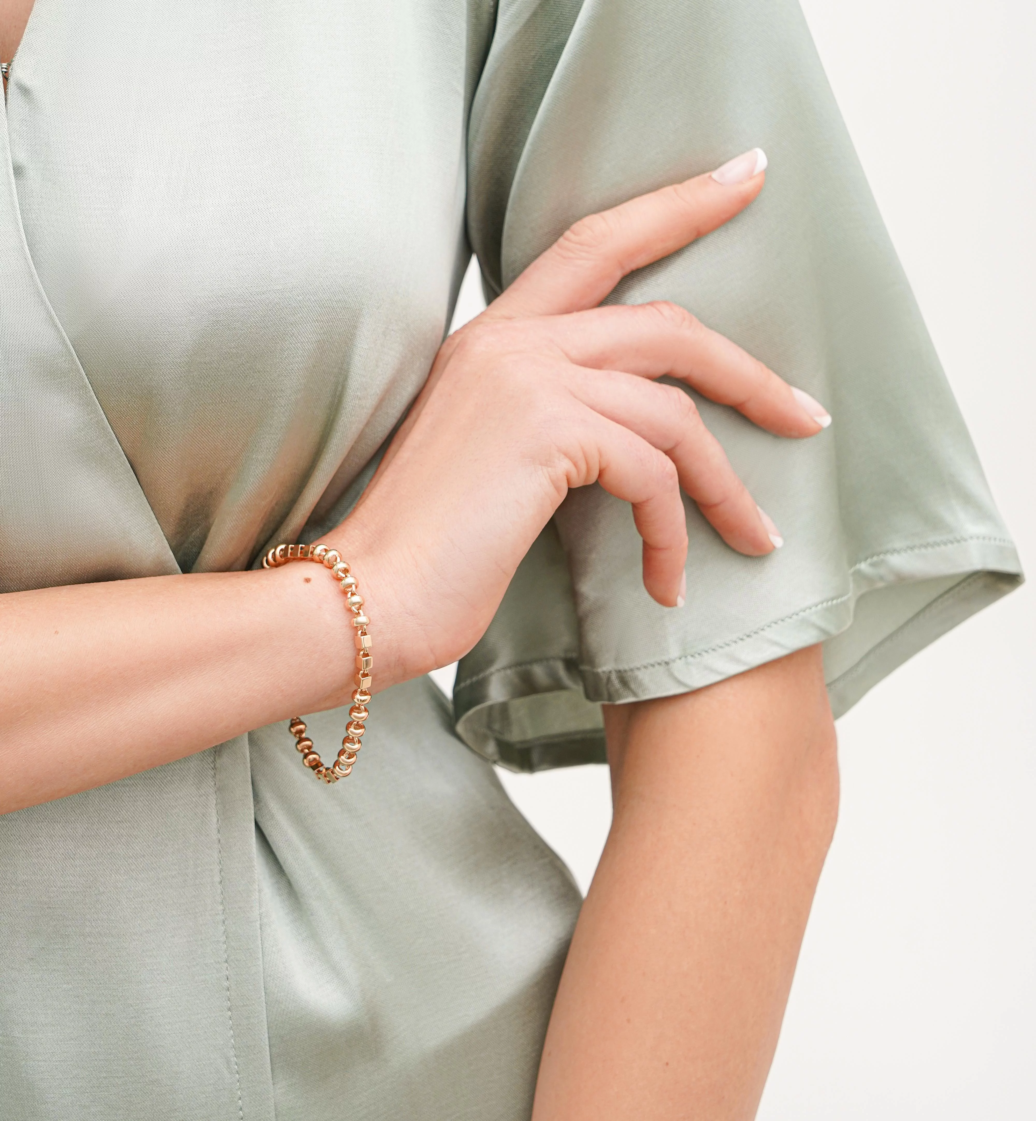 Елегантний браслет "Кулі" в комбінованому золоті з якірним плетінням - 1878714