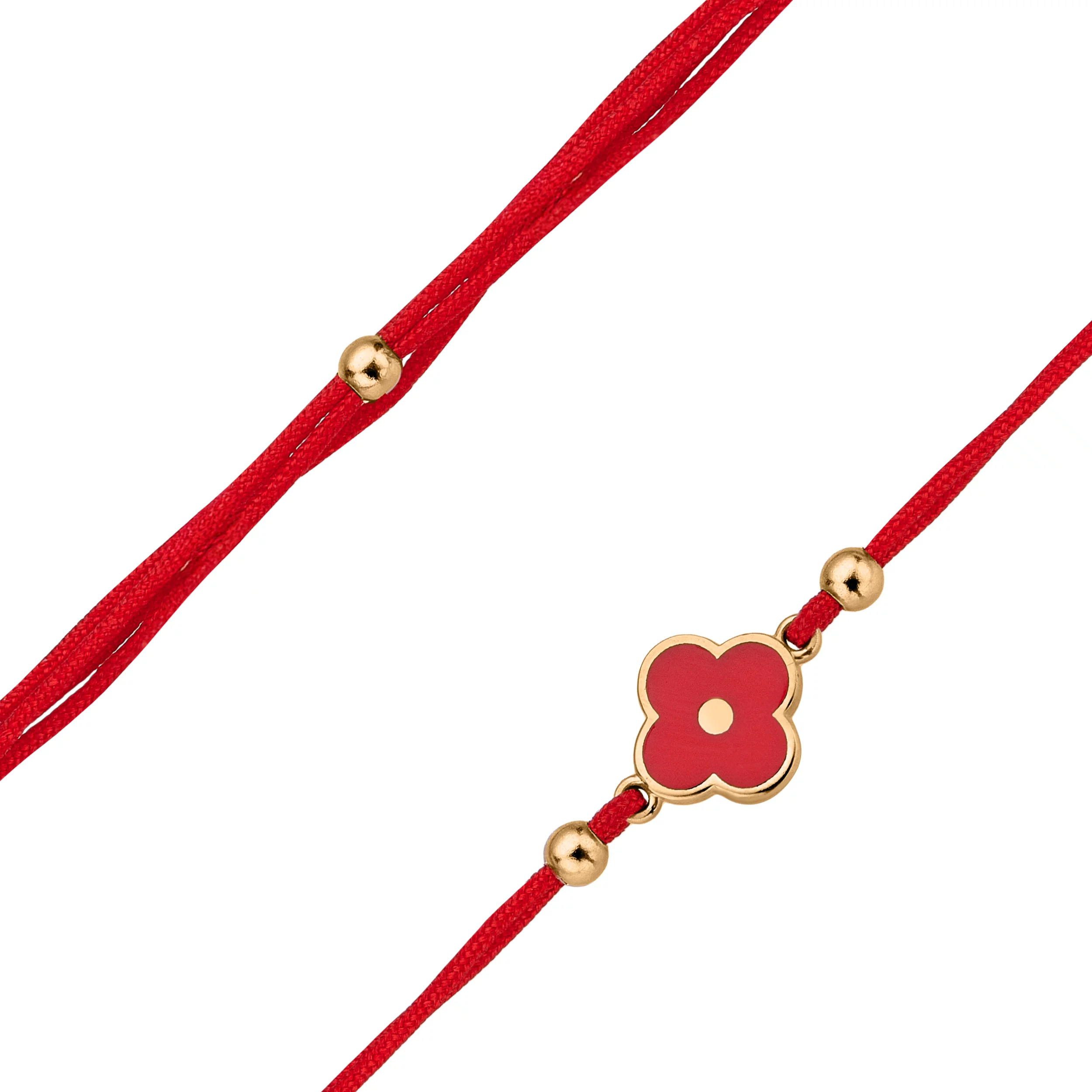 Елегантний шовковий браслет "Конюшина" зі вставками з червоного золота з емаллю - 1915862