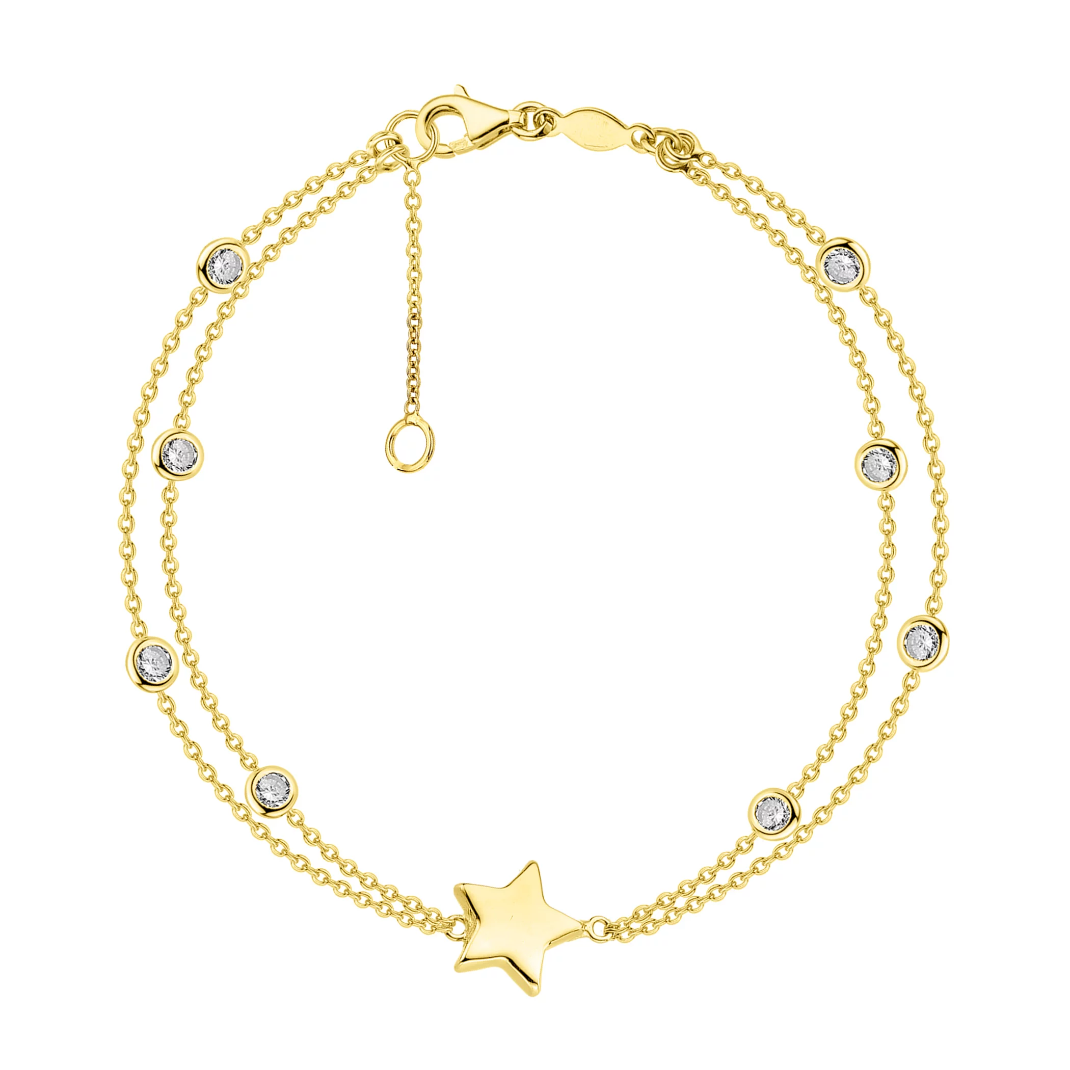 Подвійний браслет з лимонного золота з фіанітами у якірному плетінні - 1611837