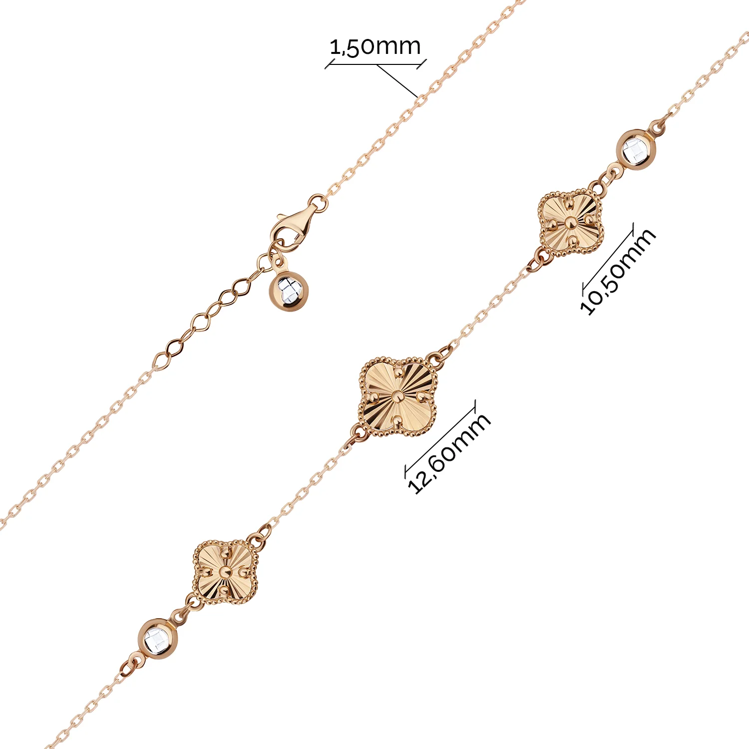 Браслет з червоного золота "Квітка" та фіанітами плетіння якір та шопард - 1641565