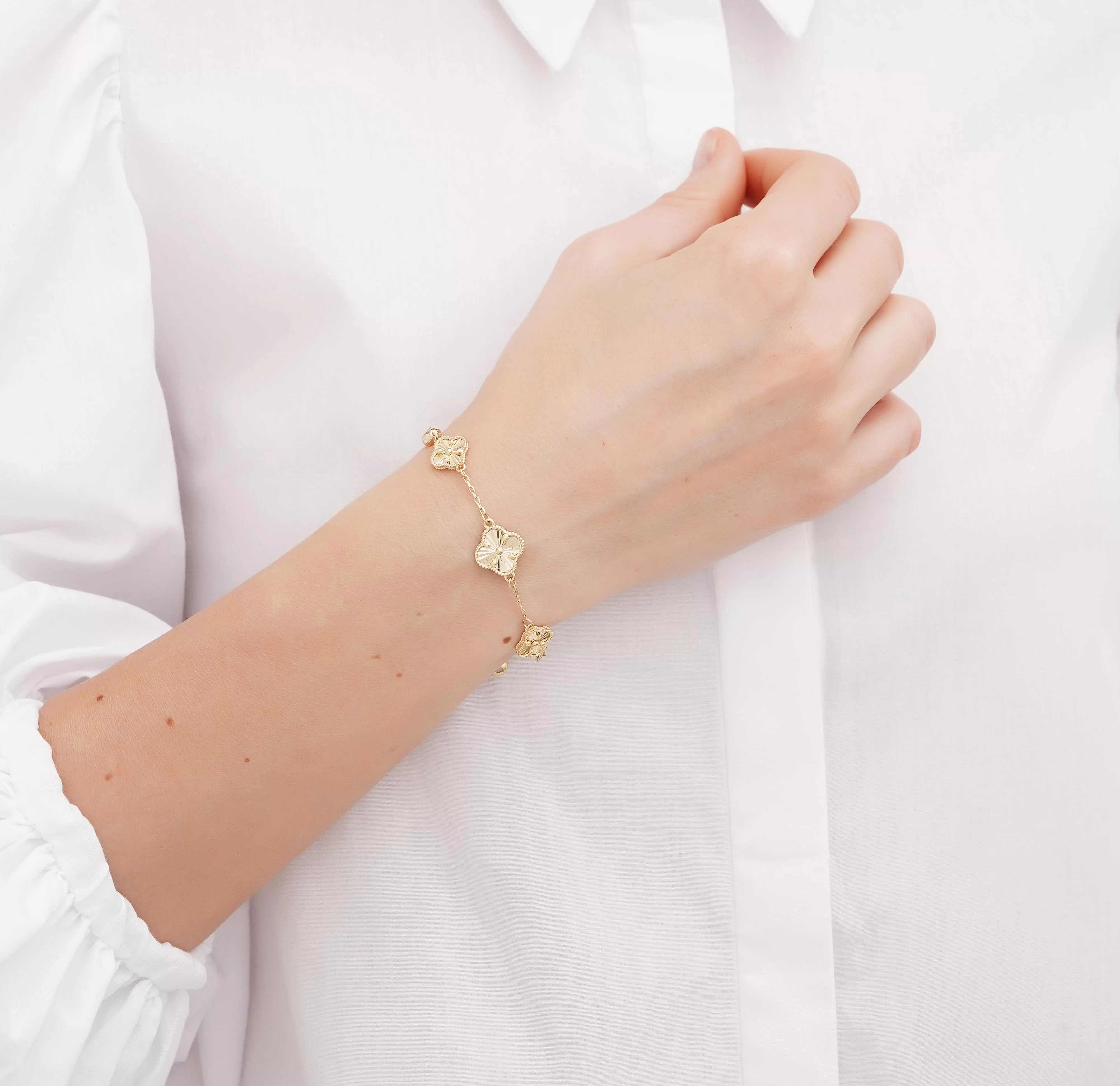 Браслет з червоного золота з агатом "Конюшина" у якірному плетінні - 367456