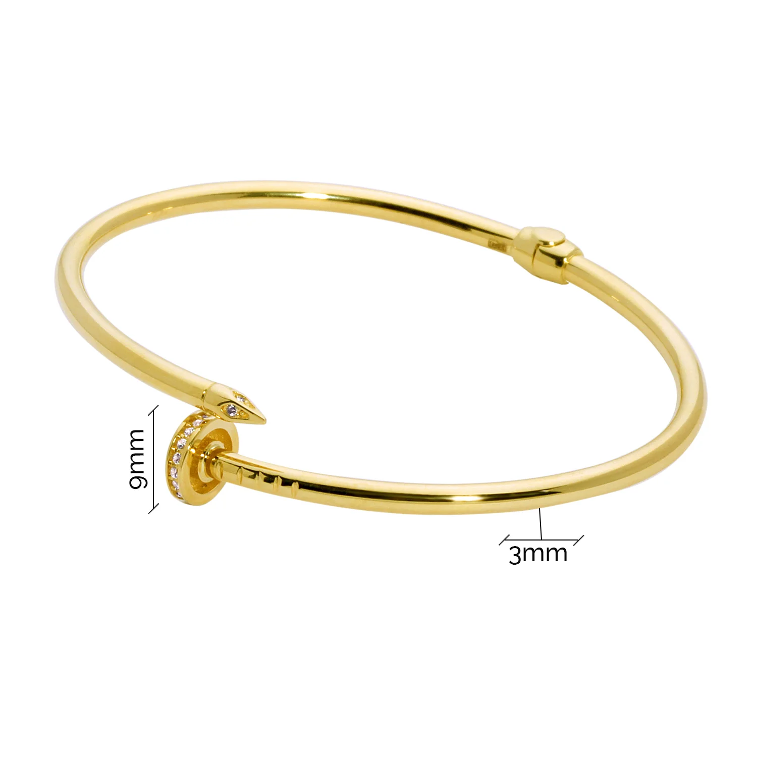Жорсткий браслет "Змія" з червоного золота з розсипом фіанітів - 1855986