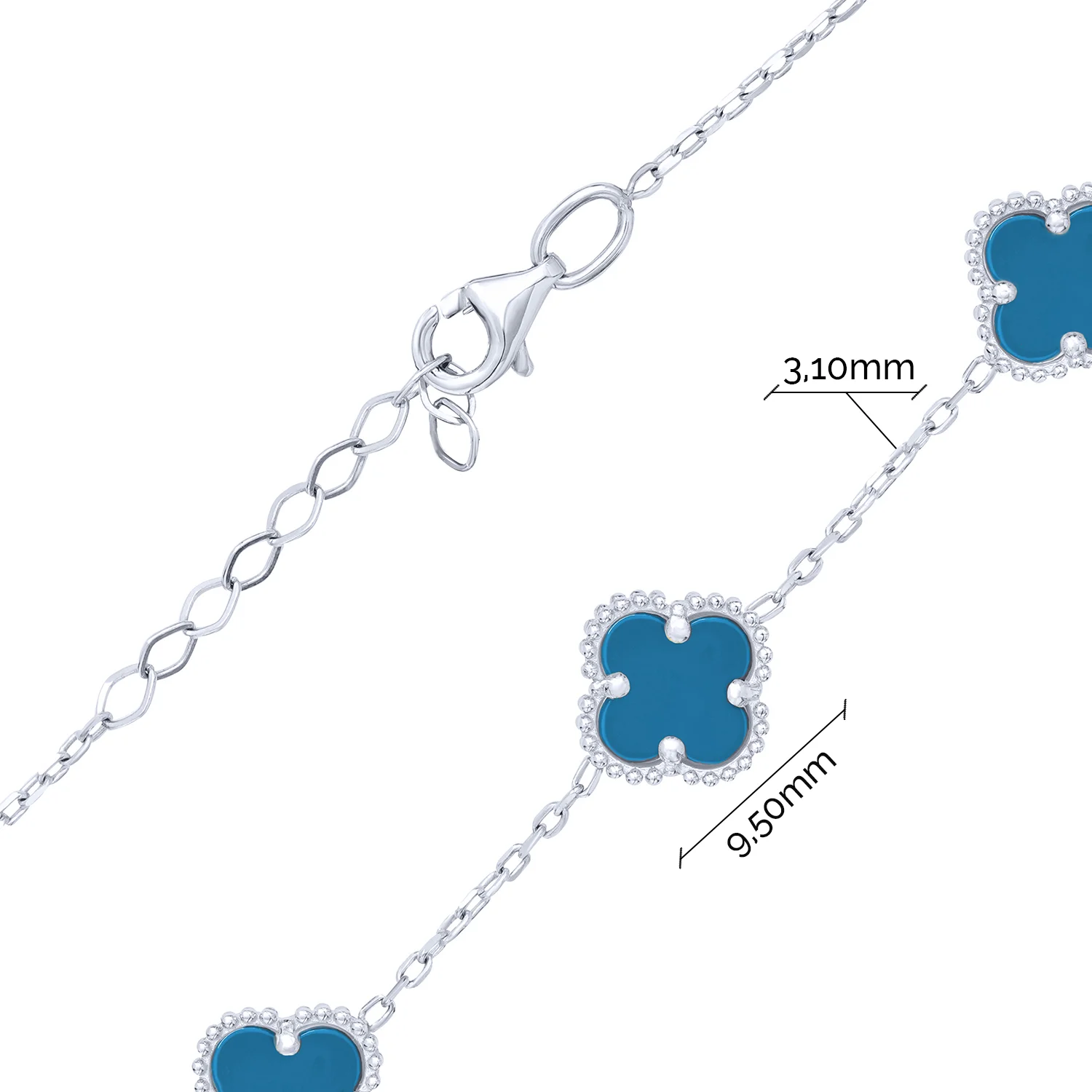 Стильний браслет "Конюшина" у сріблі з малахітом та якірним плетінням - 1880130