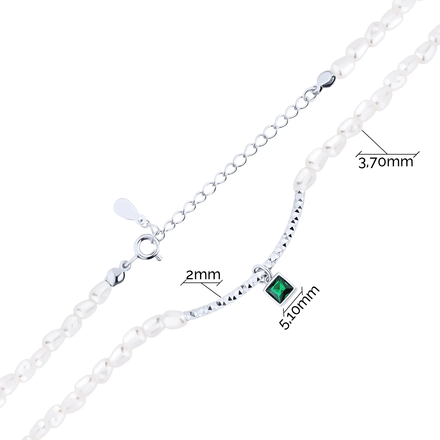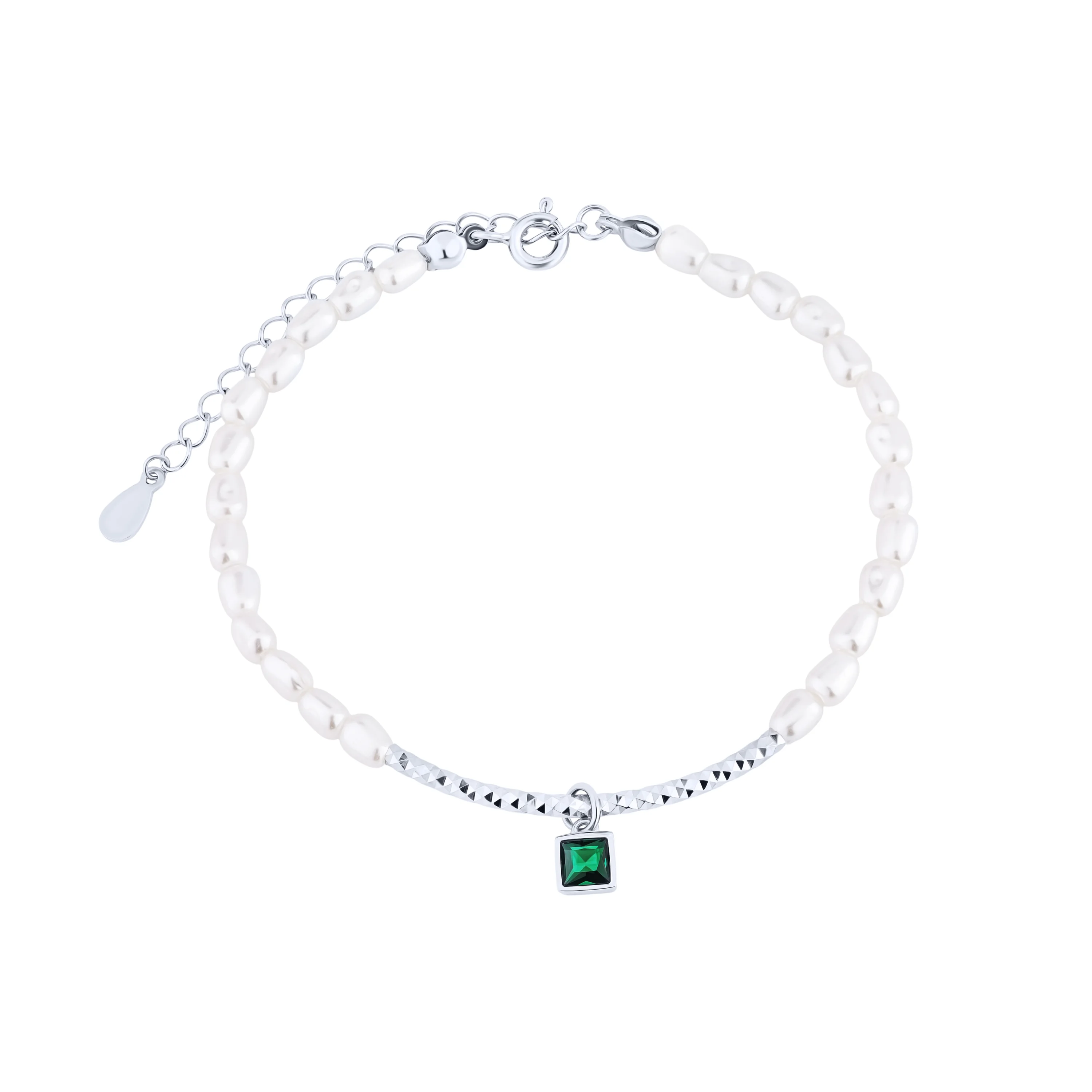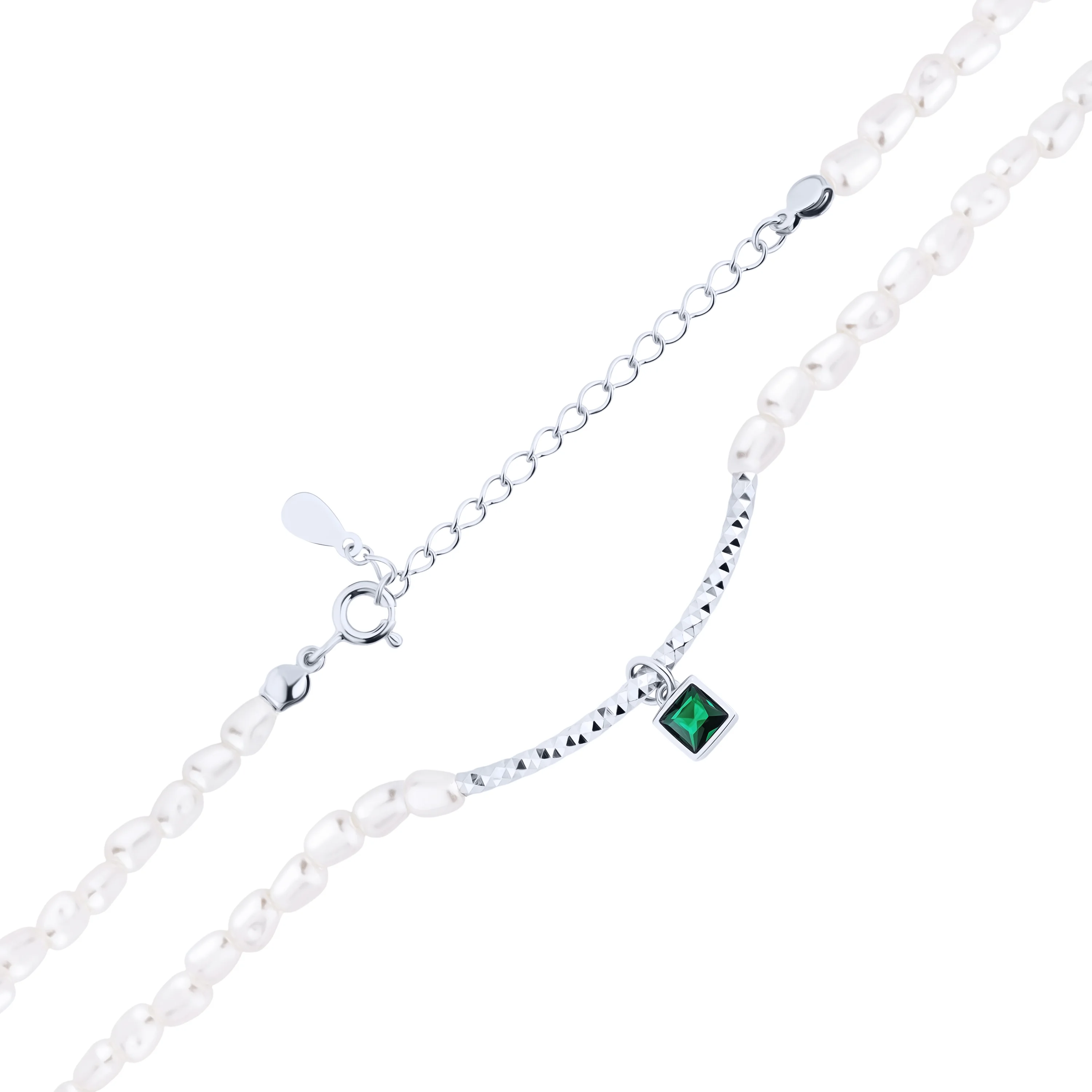 Браслет зі срібла з перлинами і фіанітом - 2132536