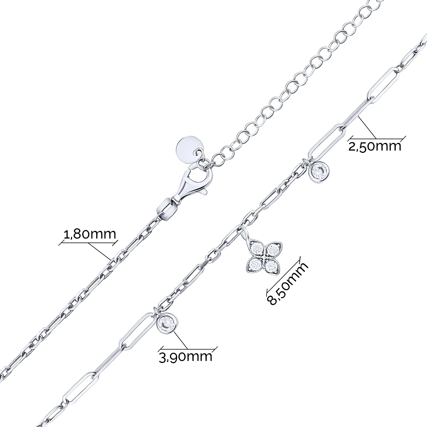Срібний браслет "Квітка" з підвісами та фіанітами плетіння якір - 2153332