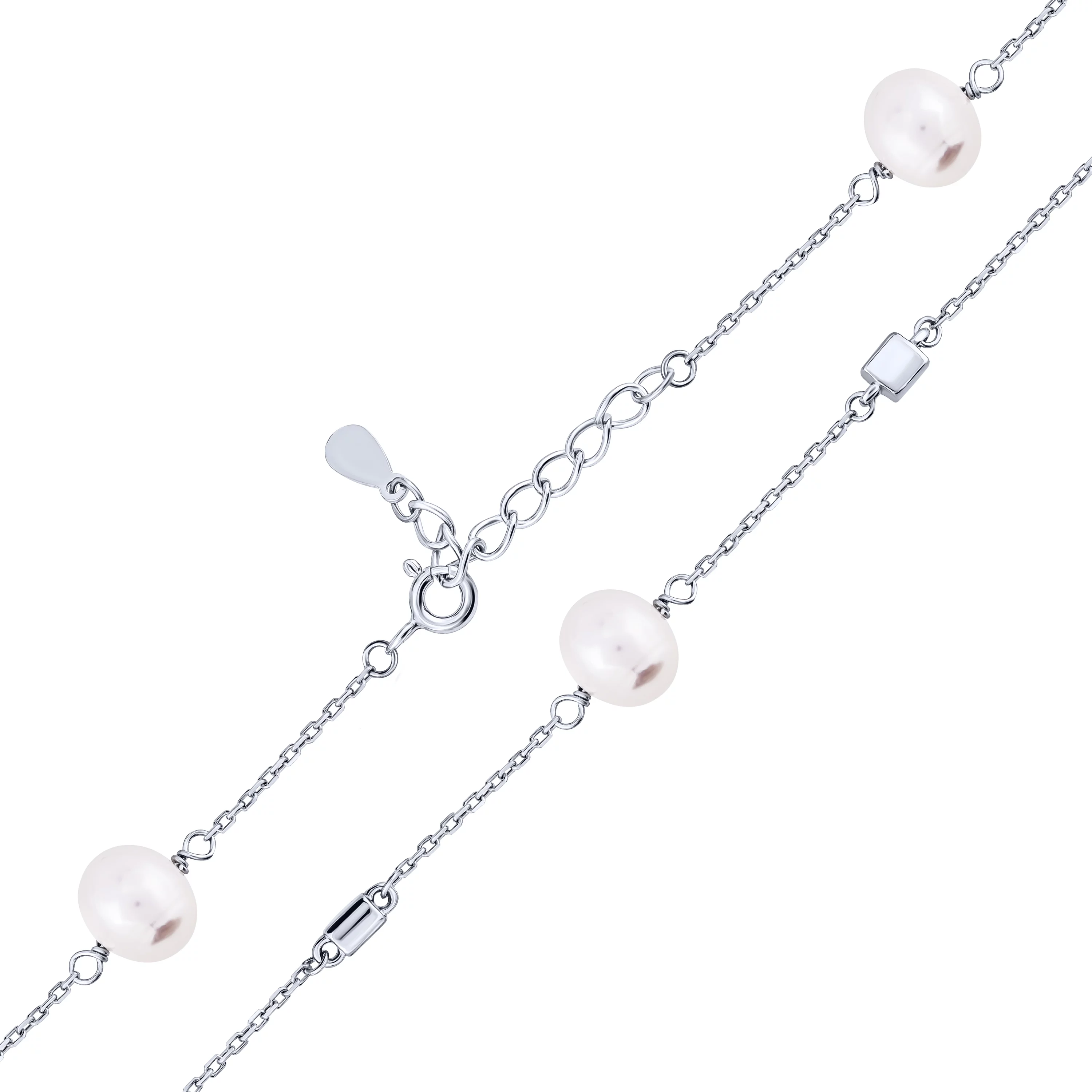 Подвійний шовковий браслет зі сріблом і фіанітом плетіння якірне - 1714533