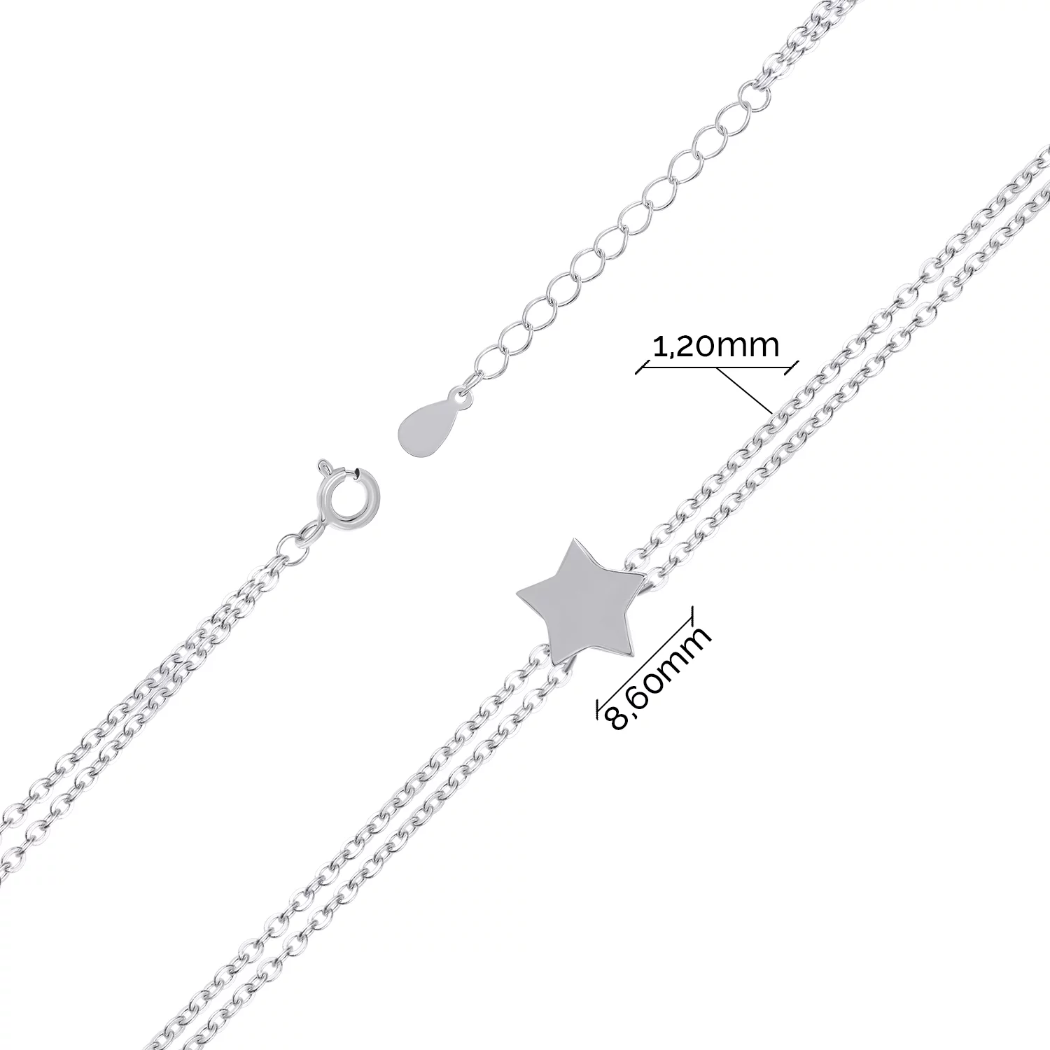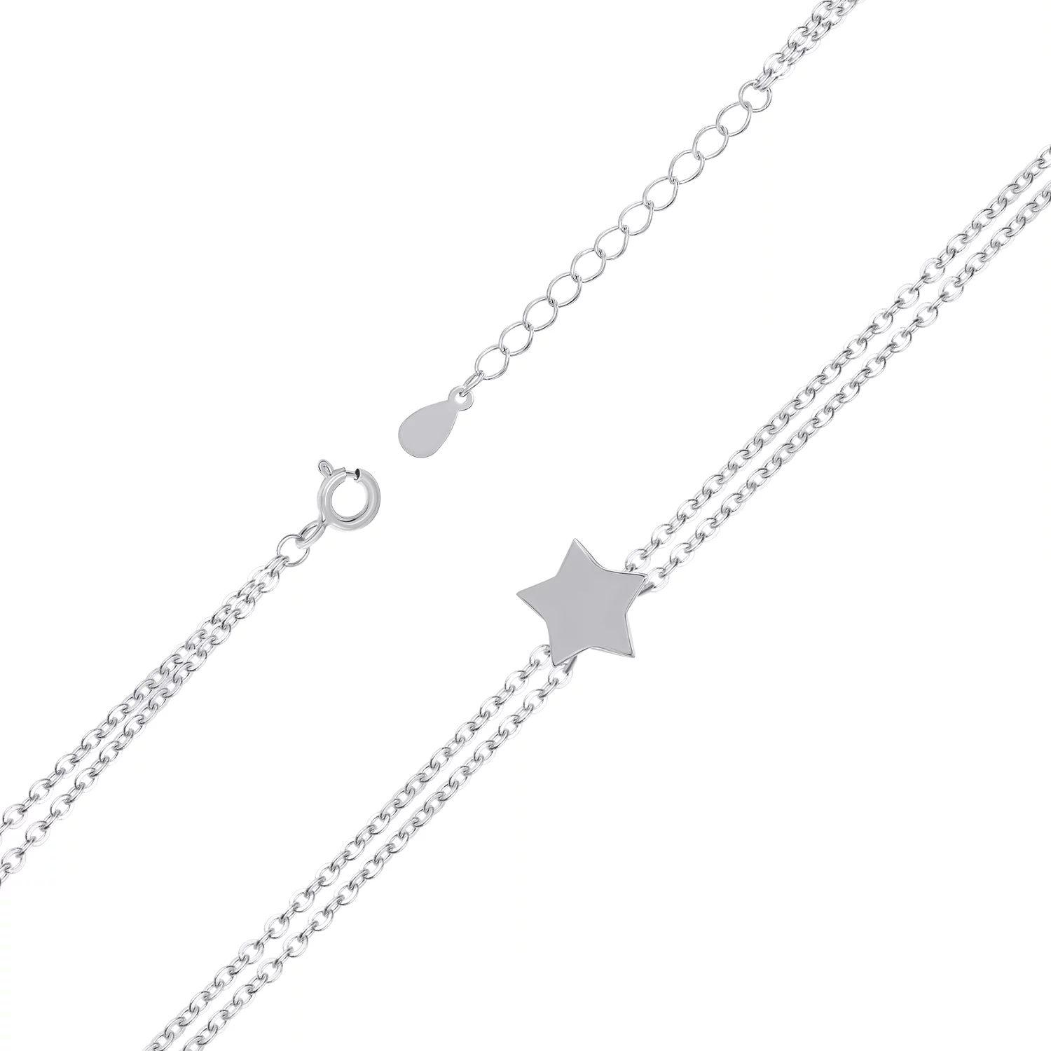 Стильний подвійний срібний браслет "Зірка" з якірним плетінням та фіанітами - 1939932