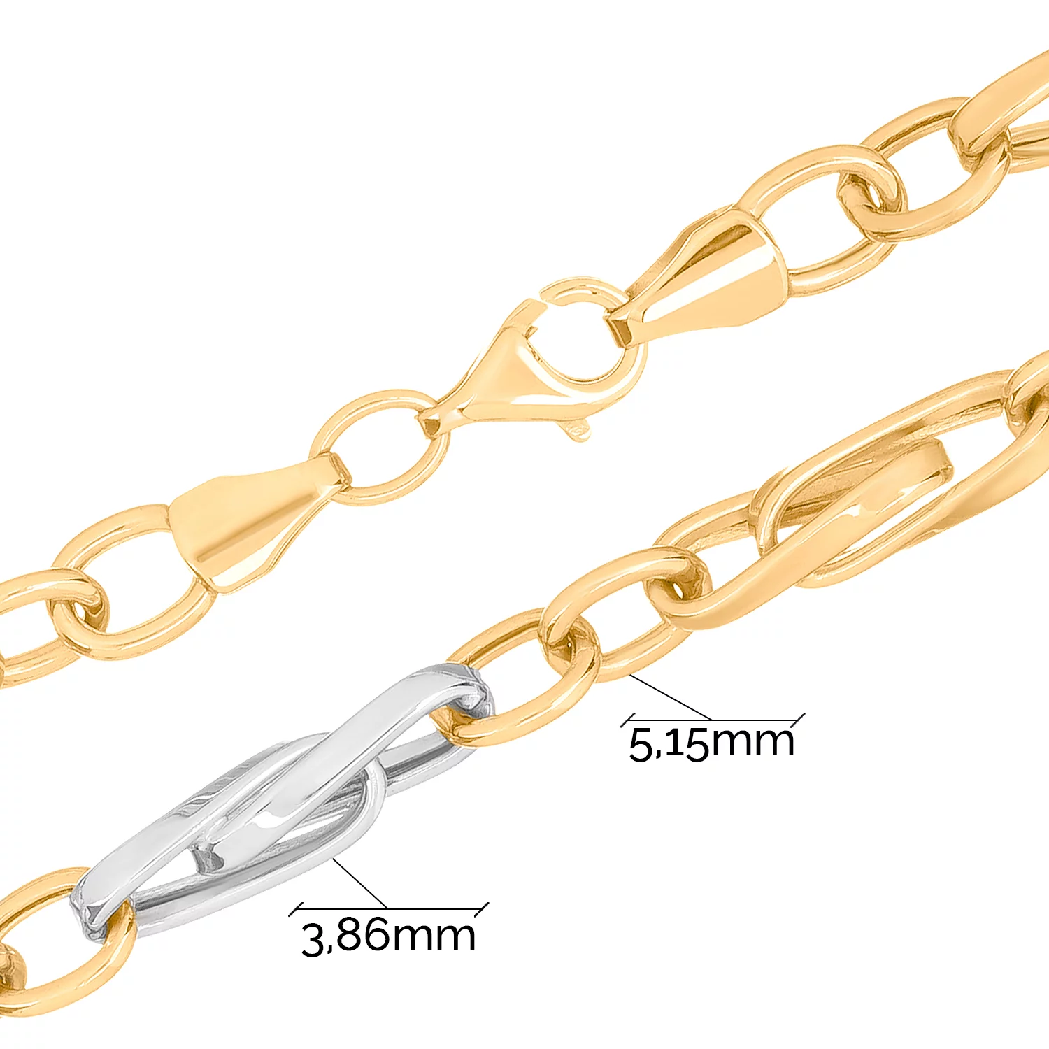 Браслет "Серце" з комбінованого золота у плетінні якір та шопард - 1657723