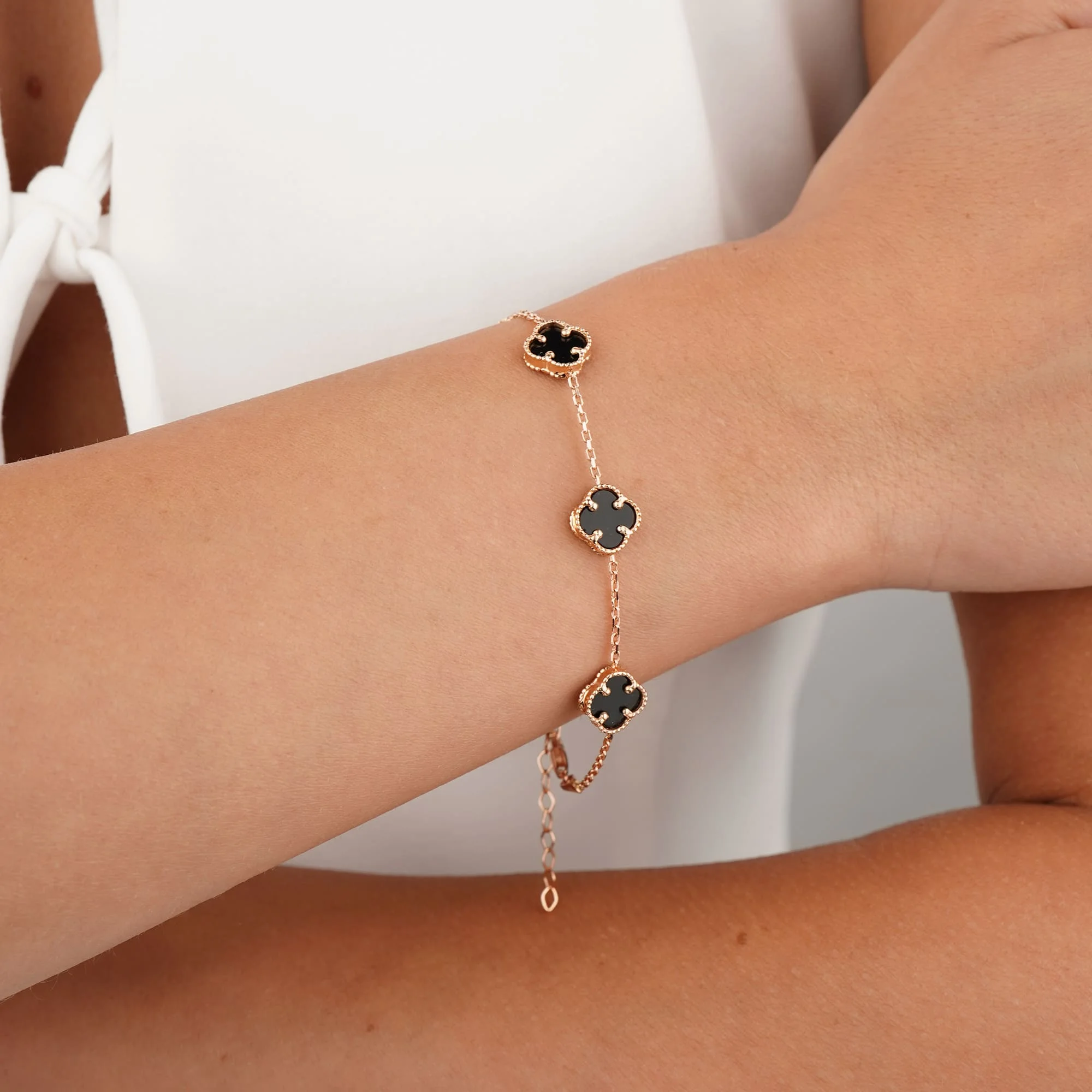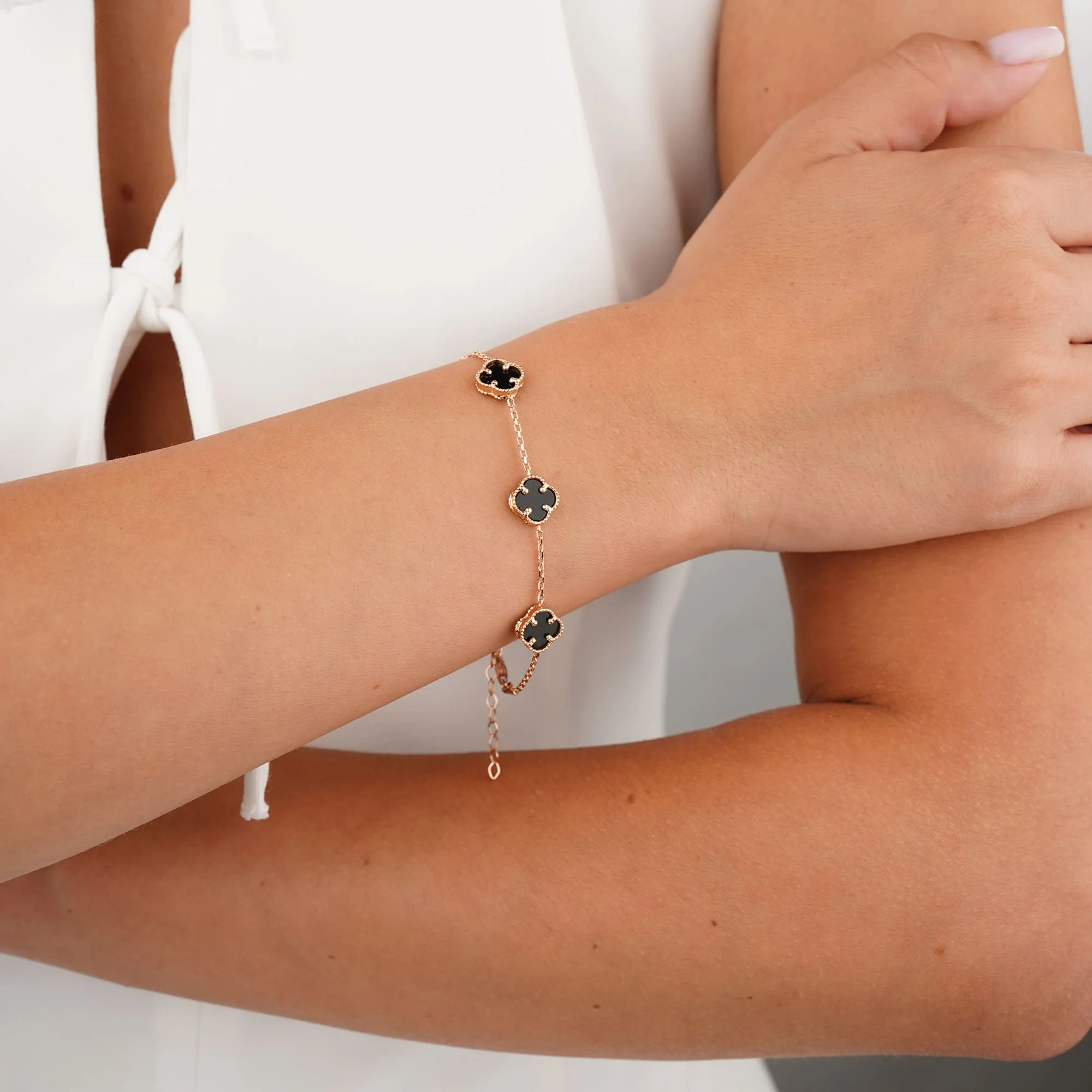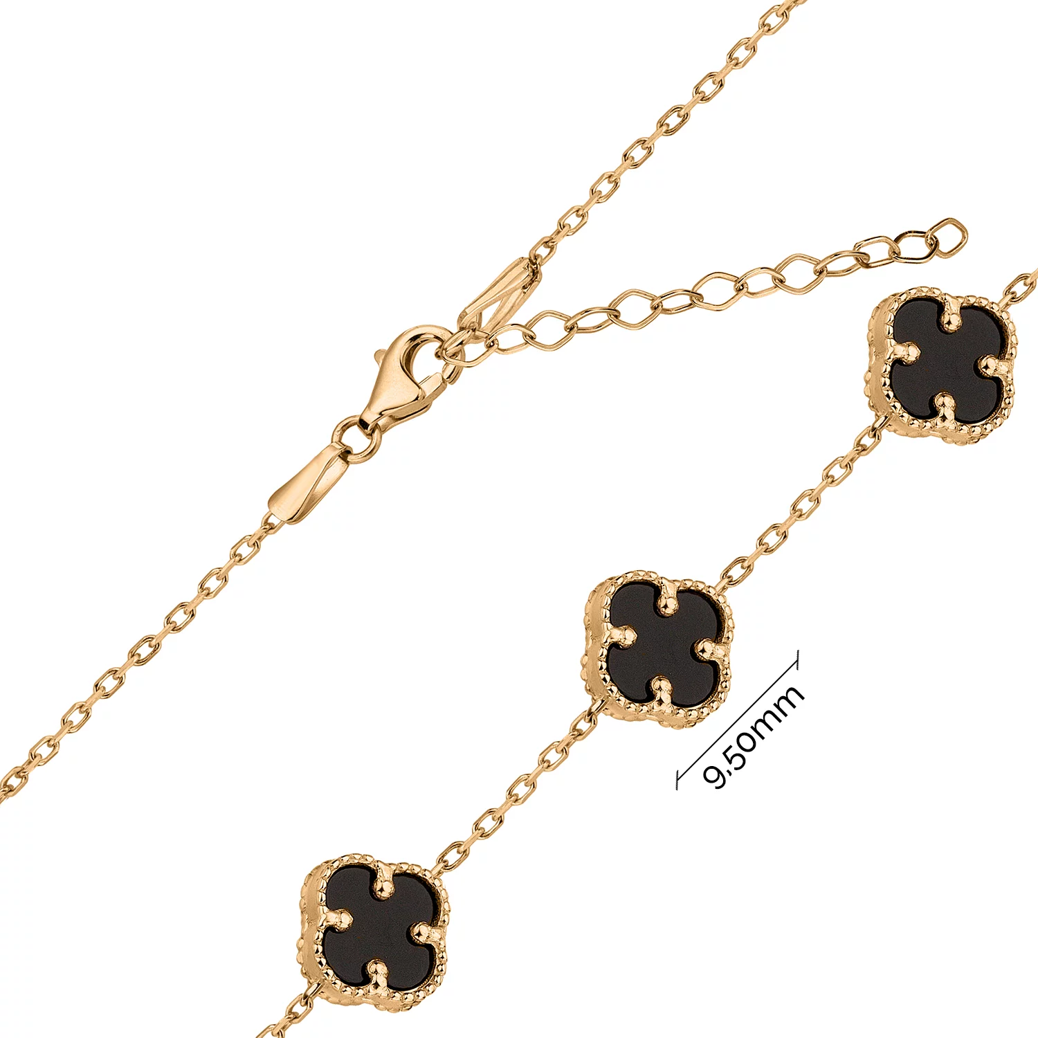 Браслет з червоного золота "Конюшина" з оніксом і перламутром - 1761586