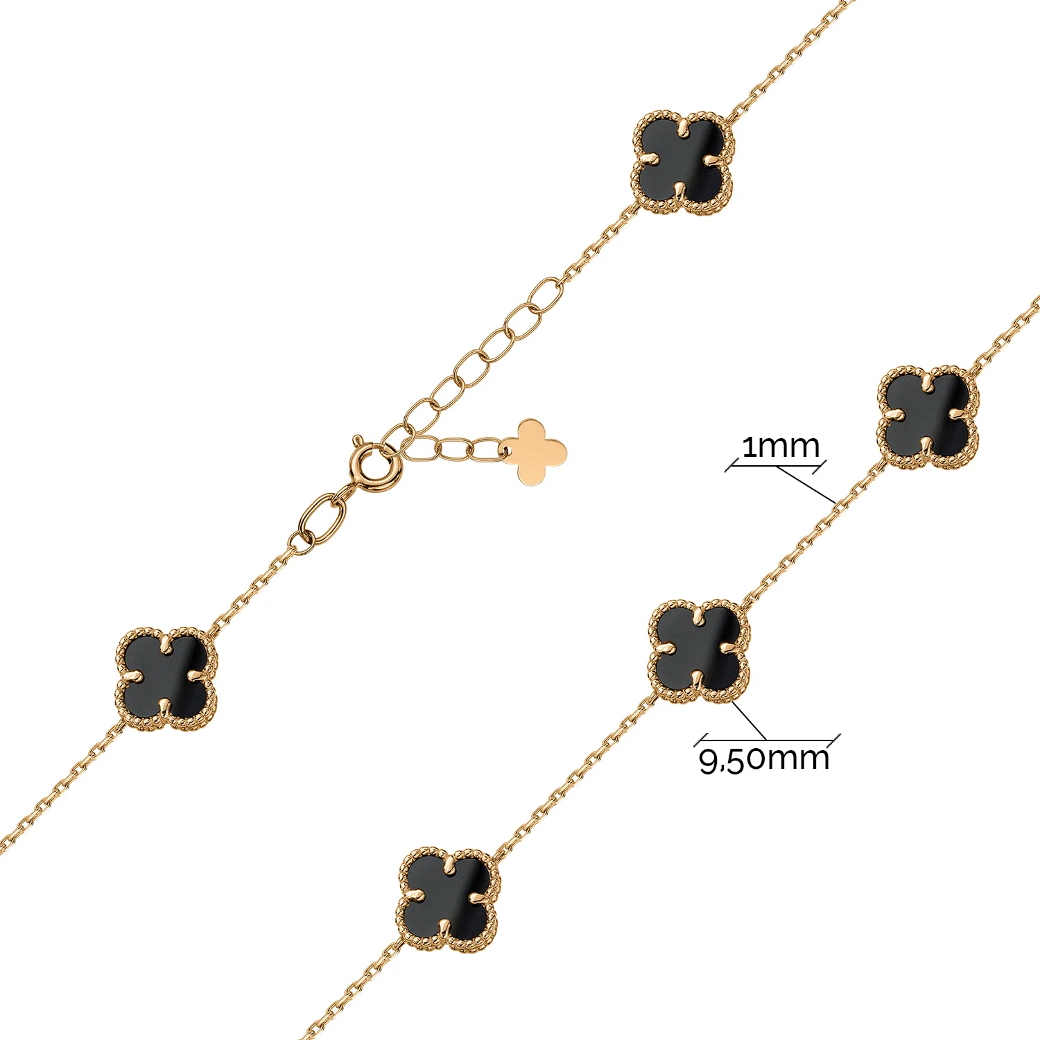 Браслет "Конюшина" з червоного золота з оніксом в якірному плетінні - 2167458