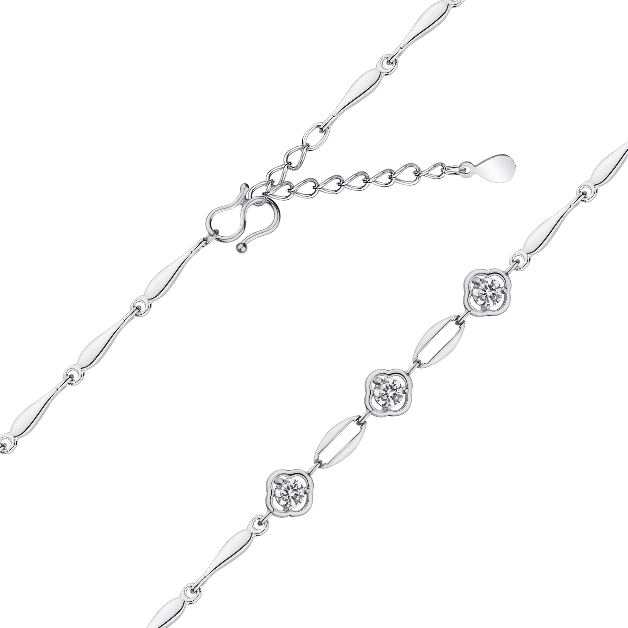 Браслет "Конюшина" срібний з емаллю та фіанітами якірне плетіння - 1618366