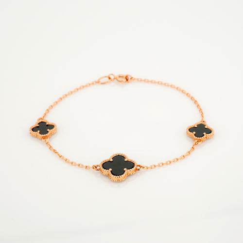 Браслет з червоного золота "Конюшина" з оніксом і перламутром - 1761586