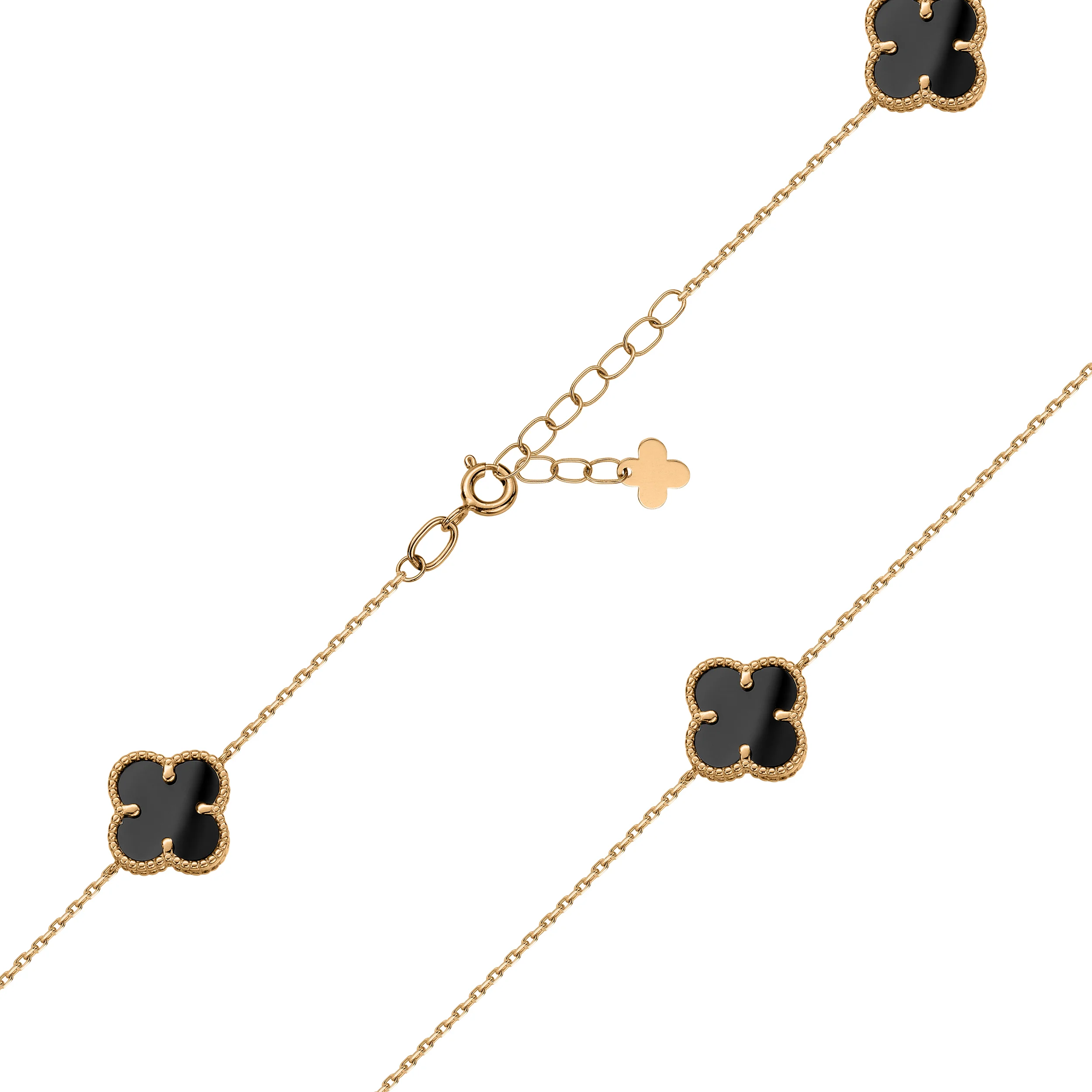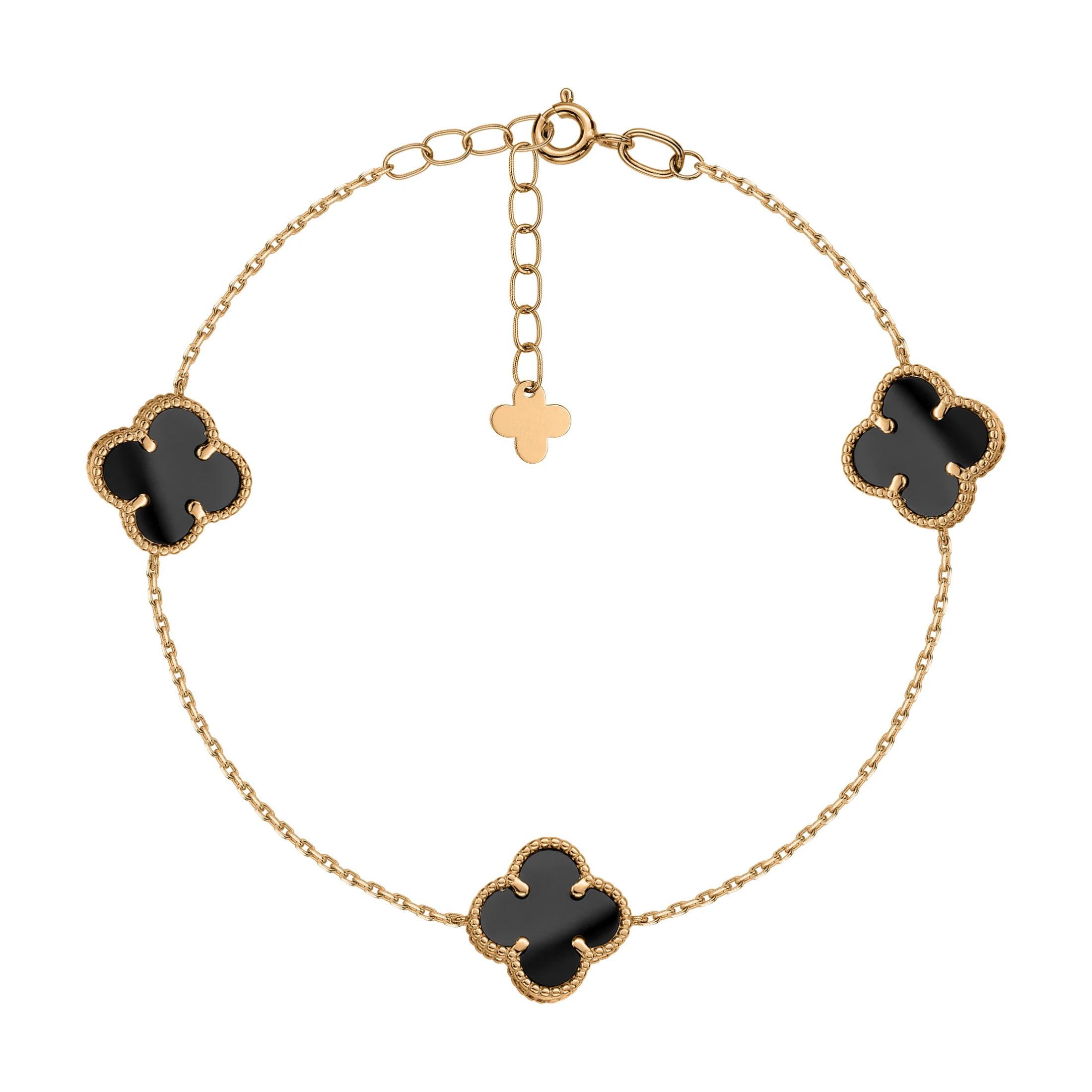 Браслет "Конюшина" в червоному золоті і якірному плетінні з оніксом - 2167203